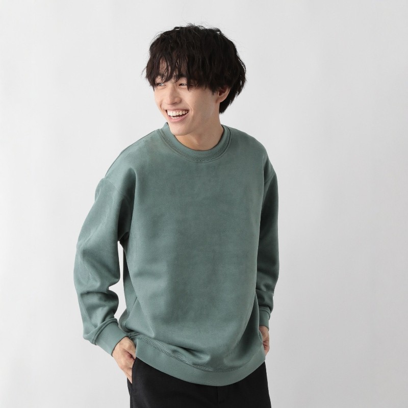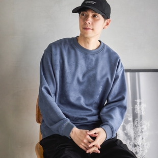 韩国chic秋冬温柔奶软蓝圆领毛绒绒设计宽松百搭长袖 羊羔毛卫衣女