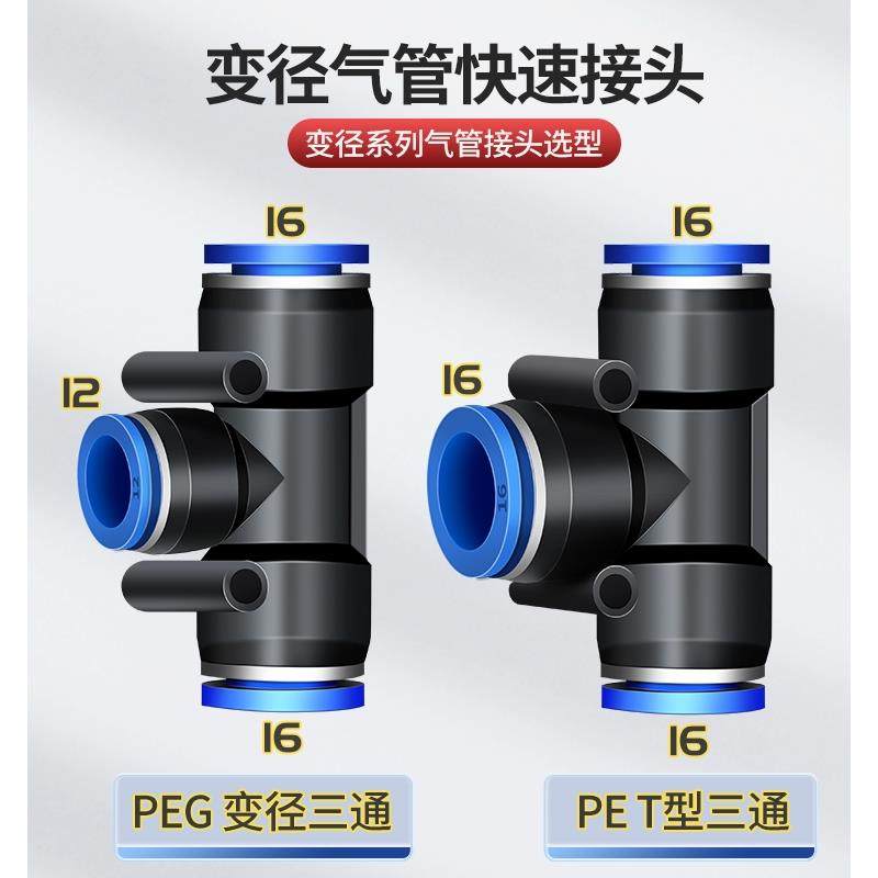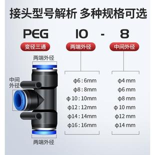 12mm气管变异径快插PEG 8塑料三通快速接头4 整包气动接头PE