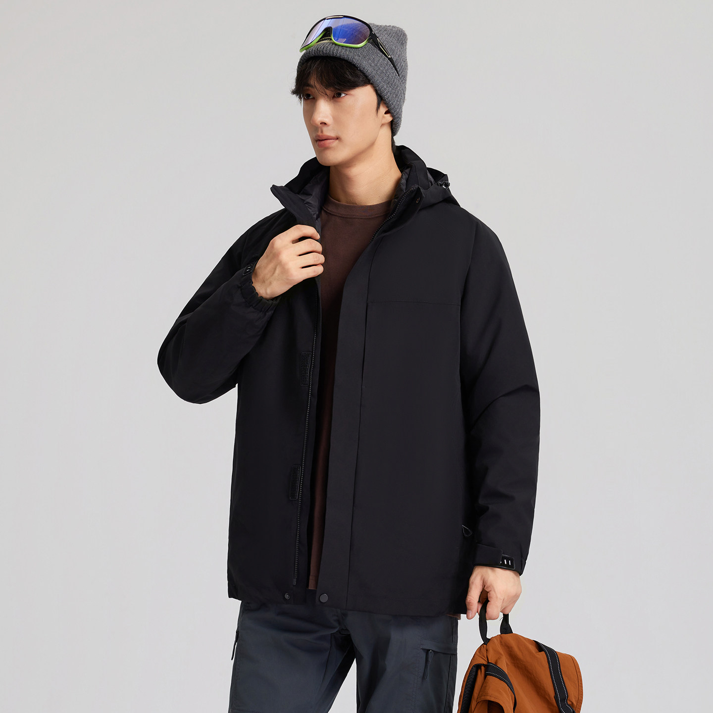 江南先生NewJNXS高密无胆防绒可拆卸袖 子羽绒服丝网印花logo外套