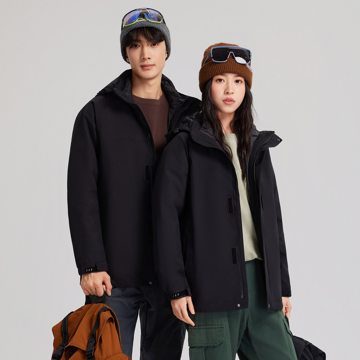江南先生NewJNXS美式 复古可拆毛领鹅绒服秋冬男女加厚面包羽绒服