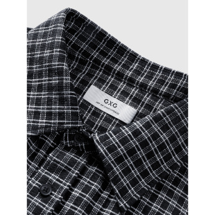 黑白格纹长袖 2024冬季 衬衫 薄外套简约衬衣 通勤男士 GXG男装