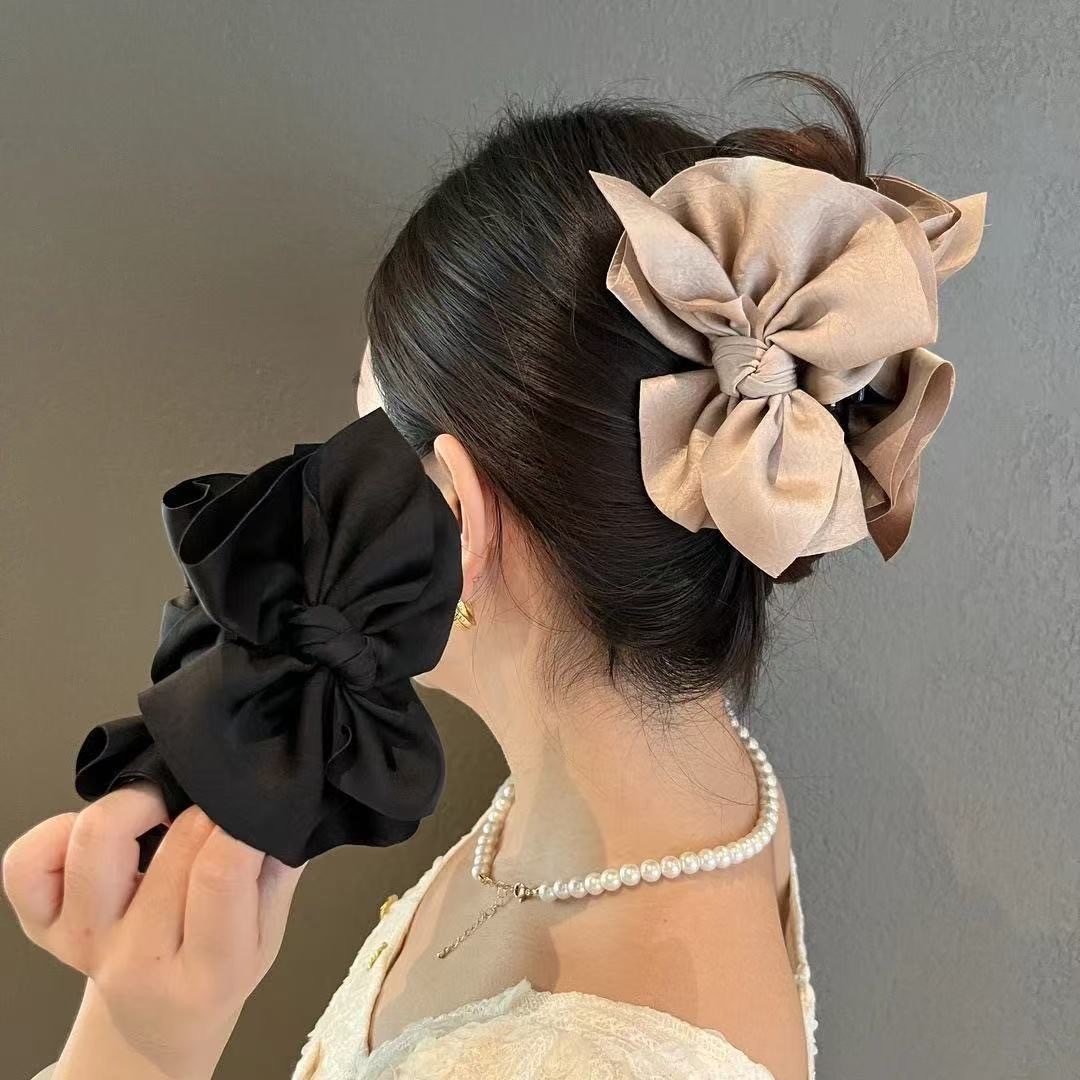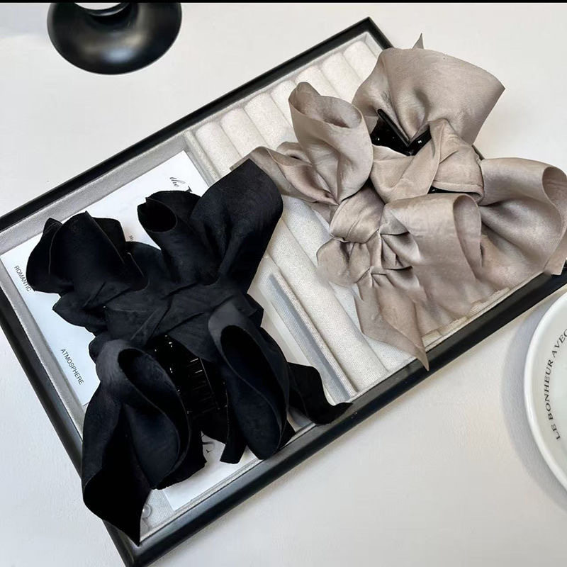 奶咖色花朵鸭嘴夹大号发夹后脑勺盘发抓夹女2025新款 秋冬毛绒发饰