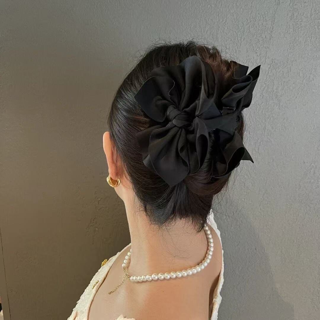 2025新款 黑色羽毛抓夹女气质鸵鸟毛大号后脑勺头饰发饰鲨鱼夹发卡