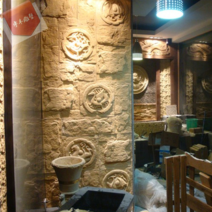 中式 饰壁画沙岩艺术墙砖四神兽 客厅玄关沙发砂岩浮雕电视背景墙装