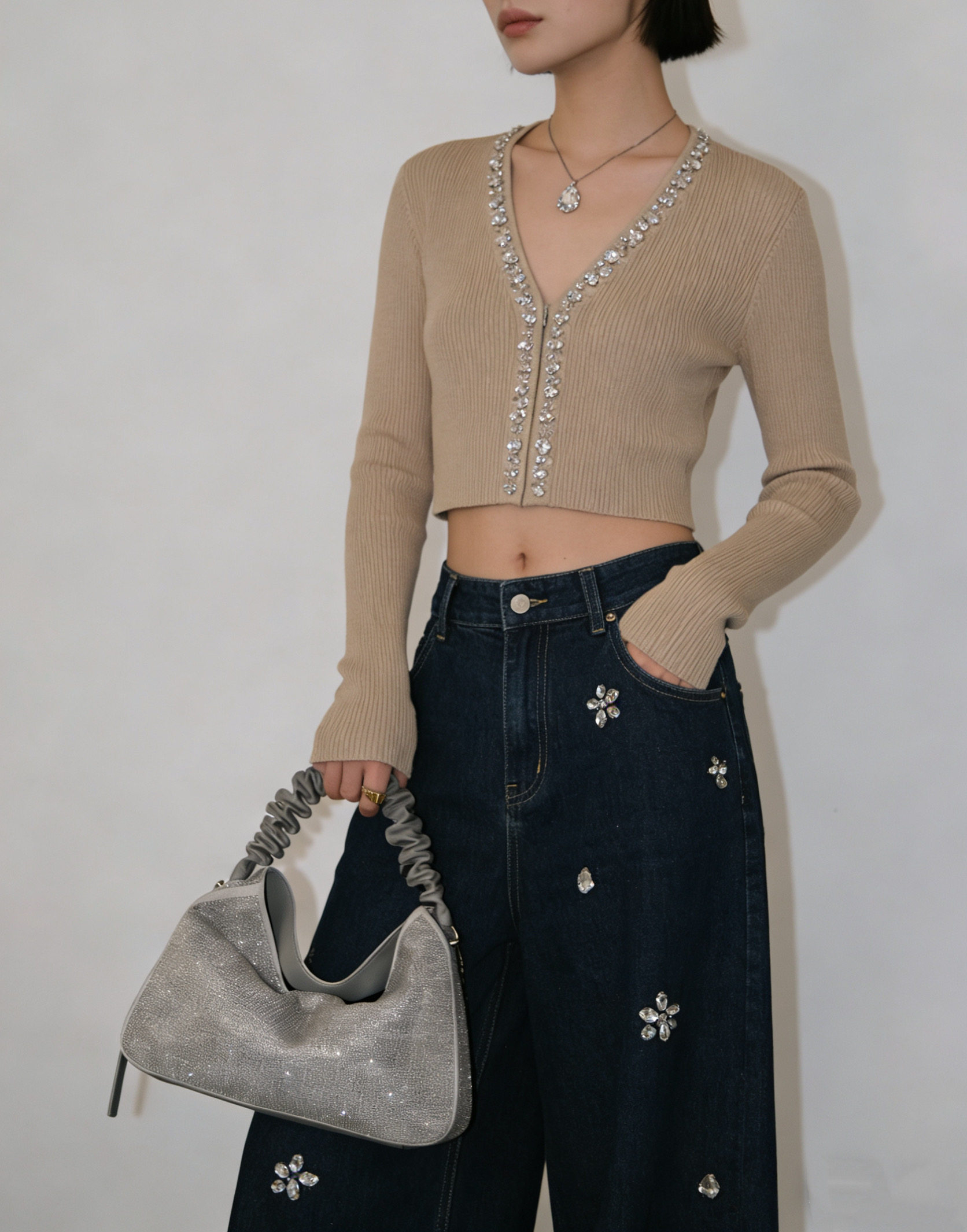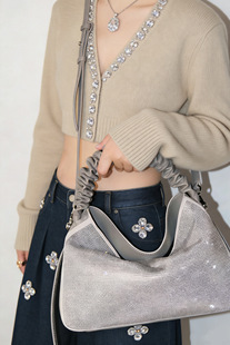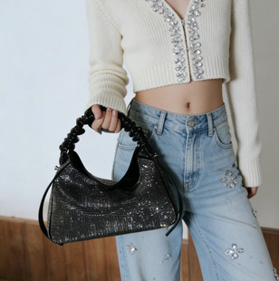 云朵褶皱手提包晚宴hobo 手提轻奢小众单肩小挎包 满钻腋下包 女款