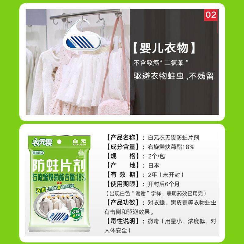 4片 衣无畏无香防蛀剂儿童衣物羊毛防蛀片替代樟脑丸 日本进口白元