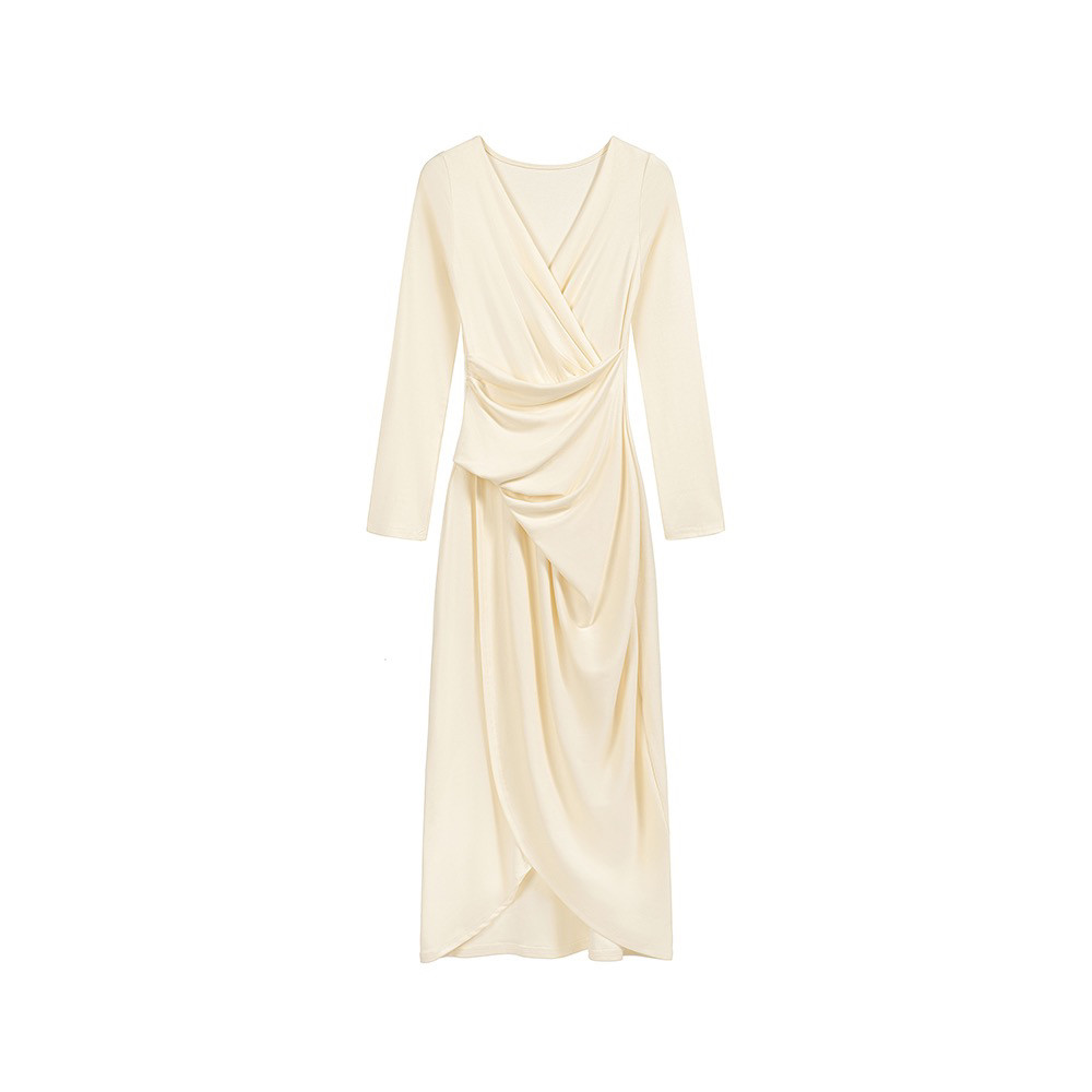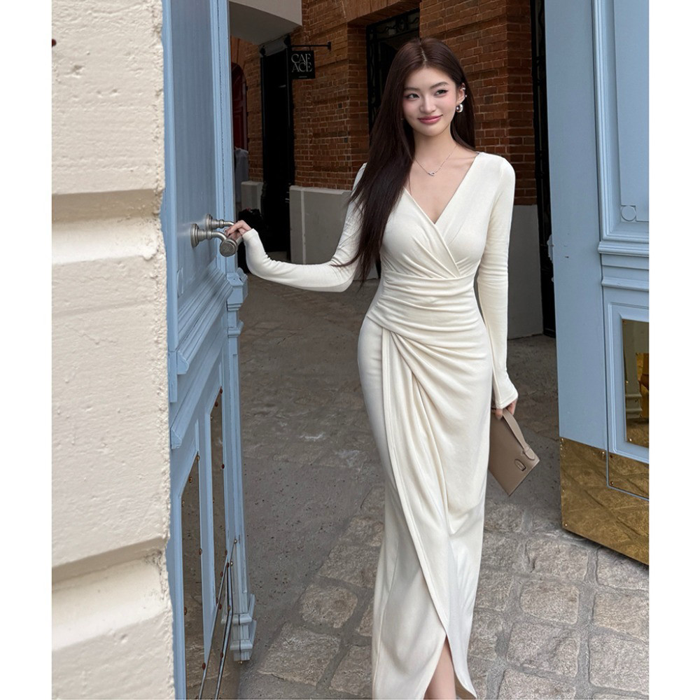 大衣内搭长款 法式 2025新款 秋冬季 打底包臀裙 气质v领连衣裙子女装