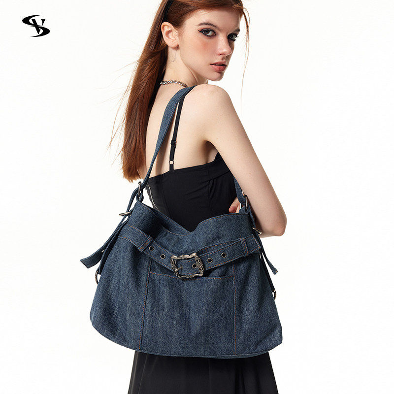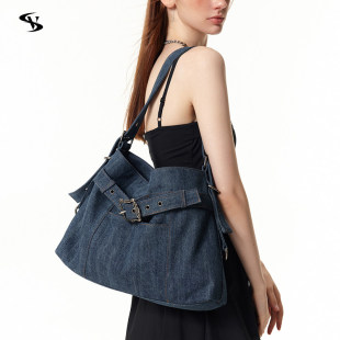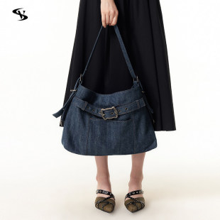 原创小众设计师斜跨包复古腋下包单肩包中古牛仔包包女