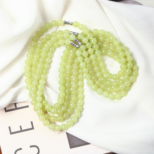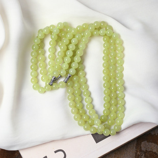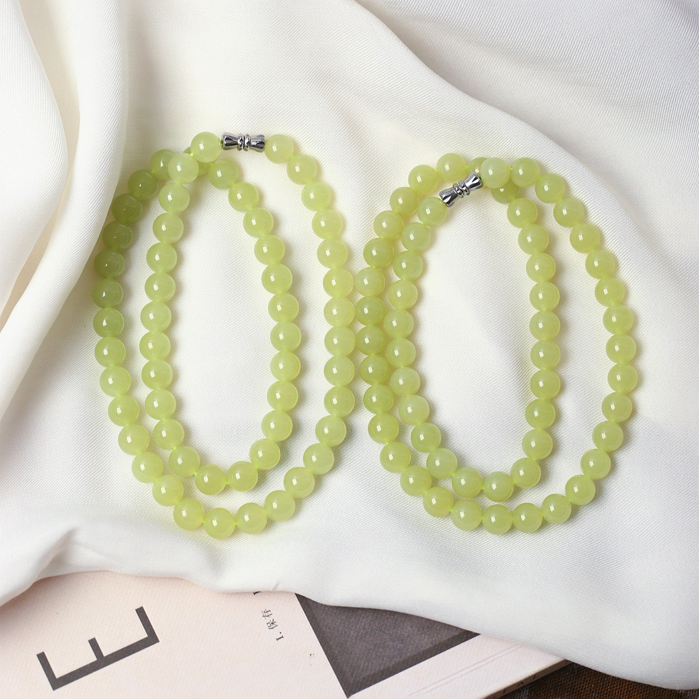 玉石颈链妈妈链项链饰品礼物 女款 天然和田玉黄口圆珠款 项链