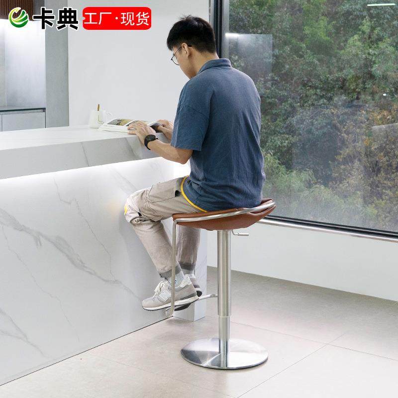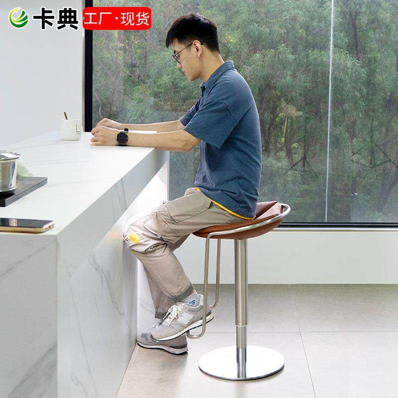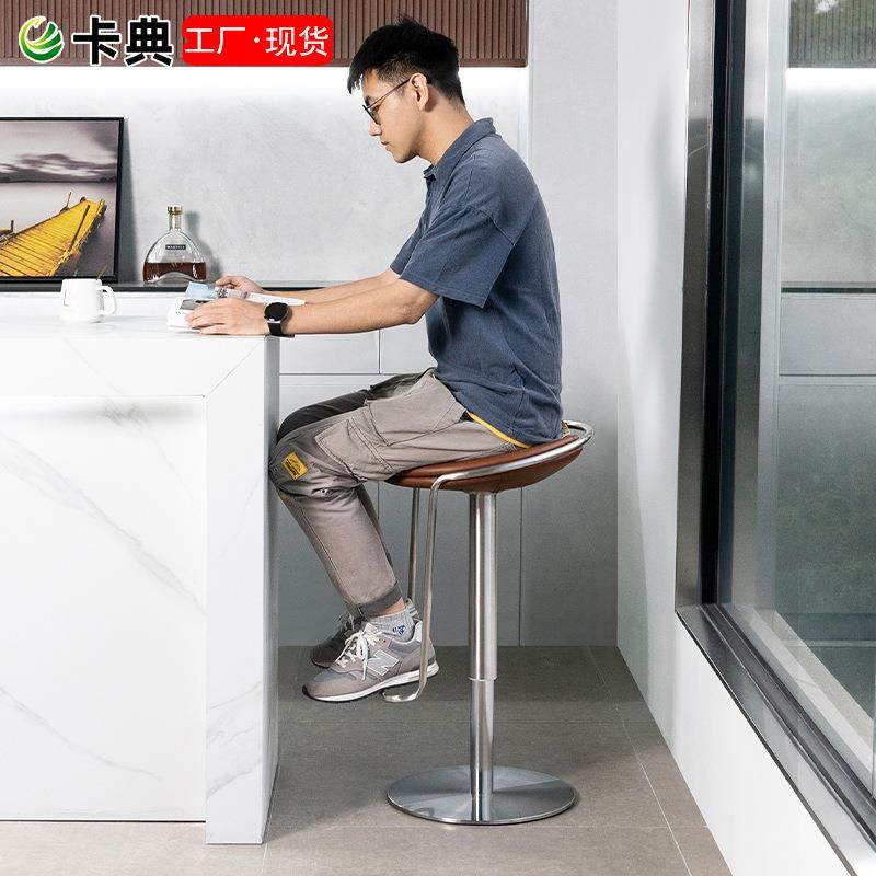轻奢吧台椅子家用现代简约升降真皮凳子意式 高脚前台岛台椅酒吧椅
