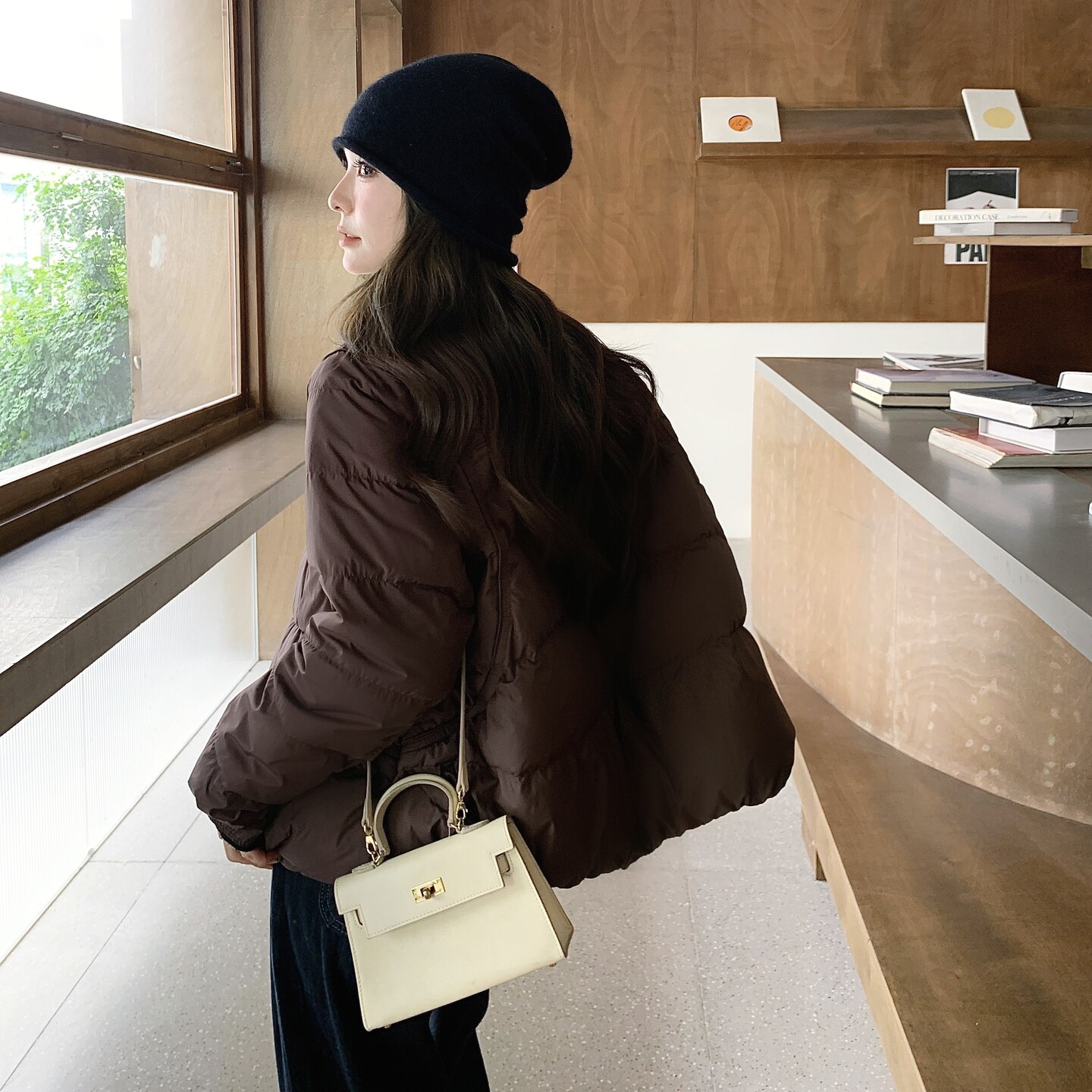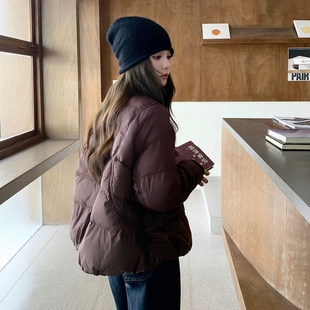 新款 2025冬季 连帽泡芙羽绒外套面包服 短款 骆驼黑钻5PRO羽绒服女装