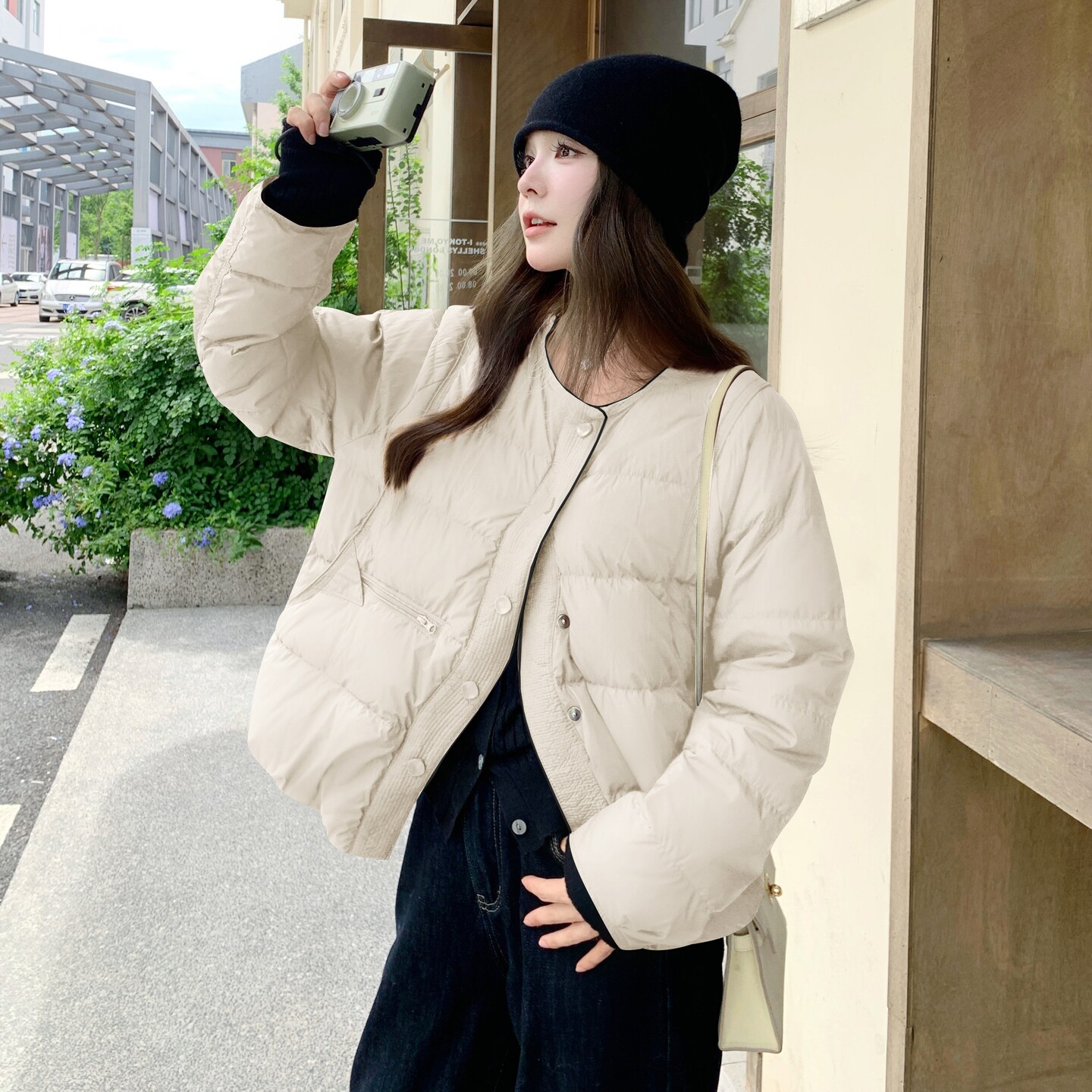 高级感白鸭绒外套 口短款 2025新款 冬国风羽绒服女提花肌理狐狸毛袖