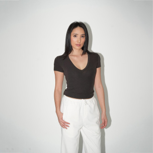 基础百搭打底外穿上衣 T恤女春夏季 WellD 雪花棉V领圆领短袖