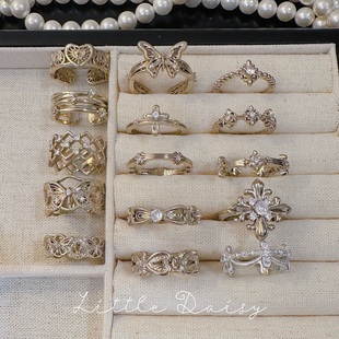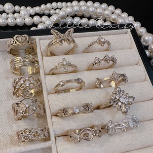 高级感蝴蝶锆石开口戒指女设计感叠戴食指戒轻奢小众设计装 饰指环