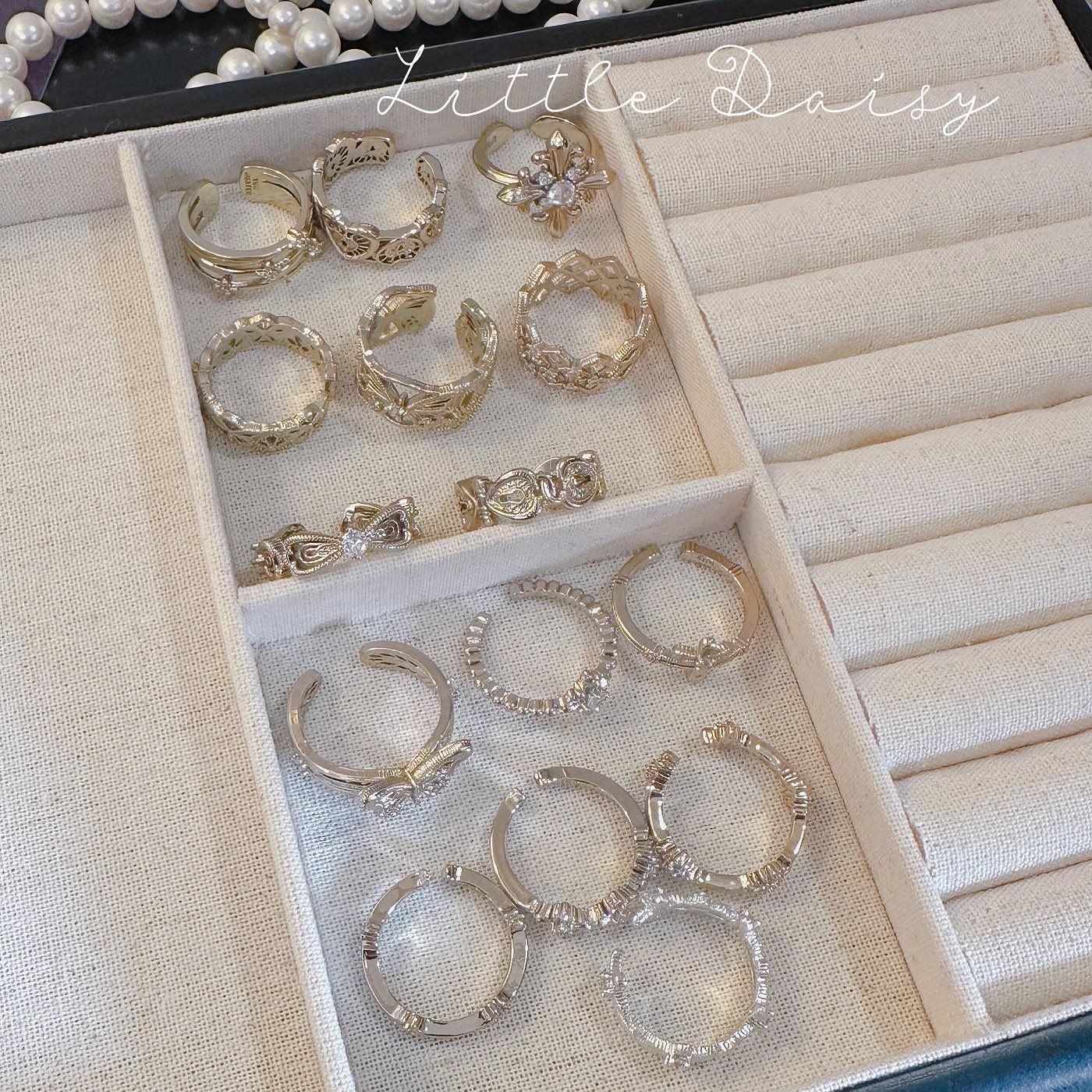 饰指环 轻奢高级食指戒小众设计装 珍珠叠戴开口戒指女2025新款 爆款