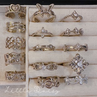 金色拉丝锆石戒指女款 开口叠戴指环 小众设计轻奢高级感食指戒法式
