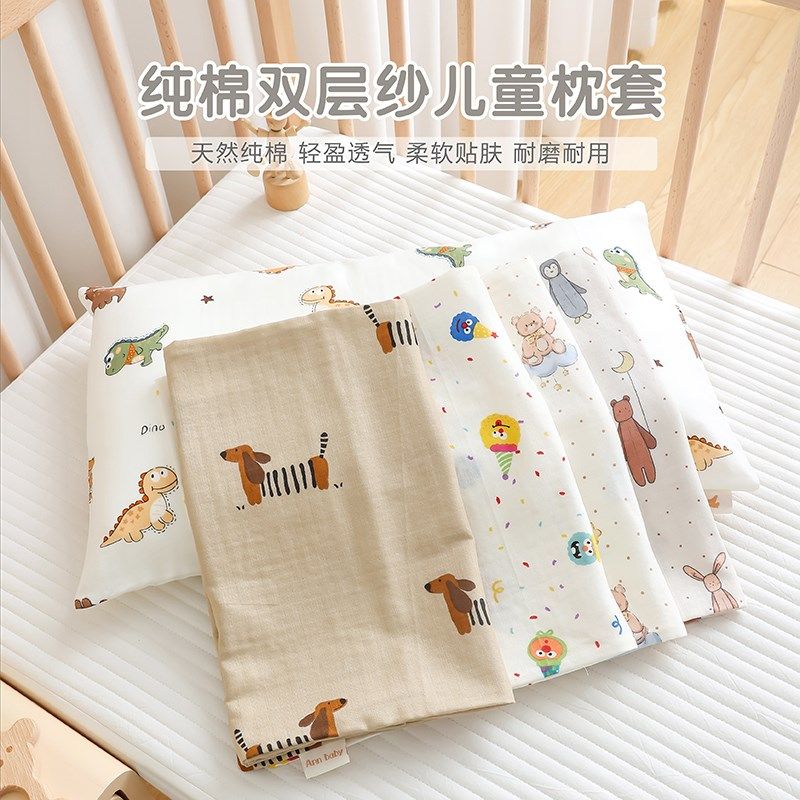 儿童纱布枕套幼儿园宝宝1 枕头套 6岁婴儿纯棉透气单人可替换四季