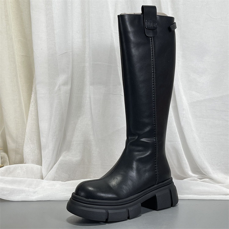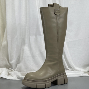 专柜正品 牛皮长筒靴骑士靴不过膝厚底真皮显瘦厚底复古高筒靴女子