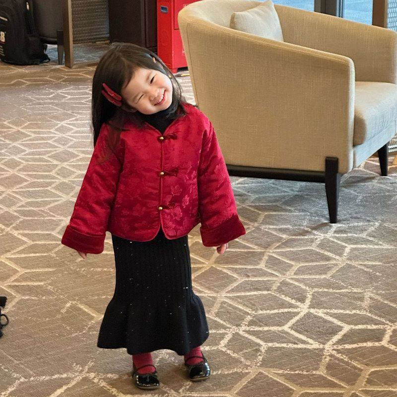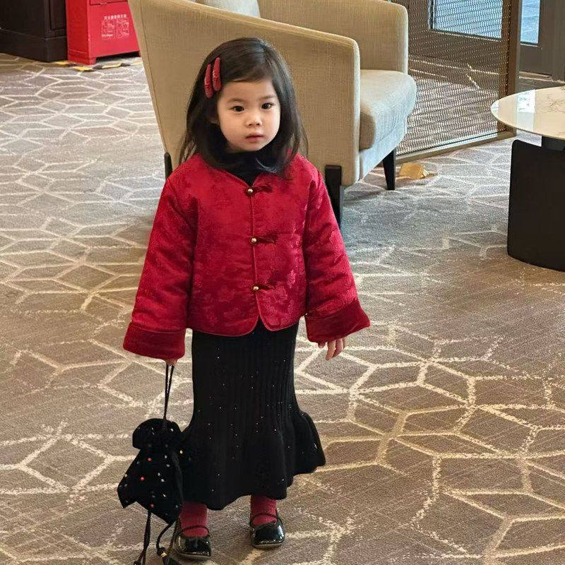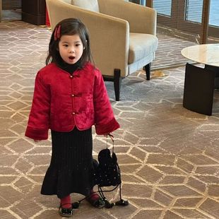 幼儿园喜庆开门红新年舞蹈演出服 加绒唐装 元 旦儿童拜年服女童冬季