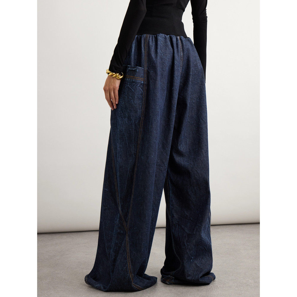 针织边高腰阔腿牛仔裤 女士 AA9P1309D014C 香港直邮alaia 1h可退