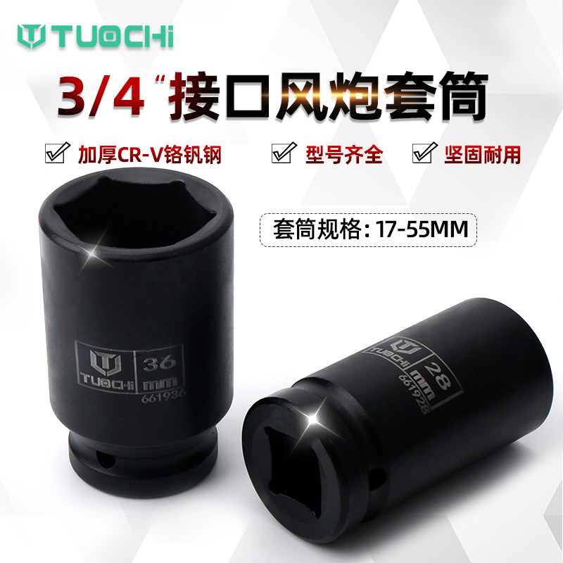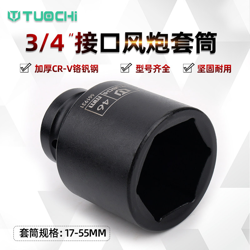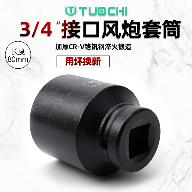 轮胎筒头子黑色 加长加厚重型中风炮筒头六角扳头汽修