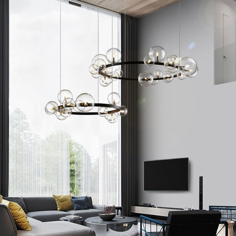 北欧大气客厅灯简约魔豆分子泡泡灯网红卧室灯餐厅玻璃圆球吊灯
