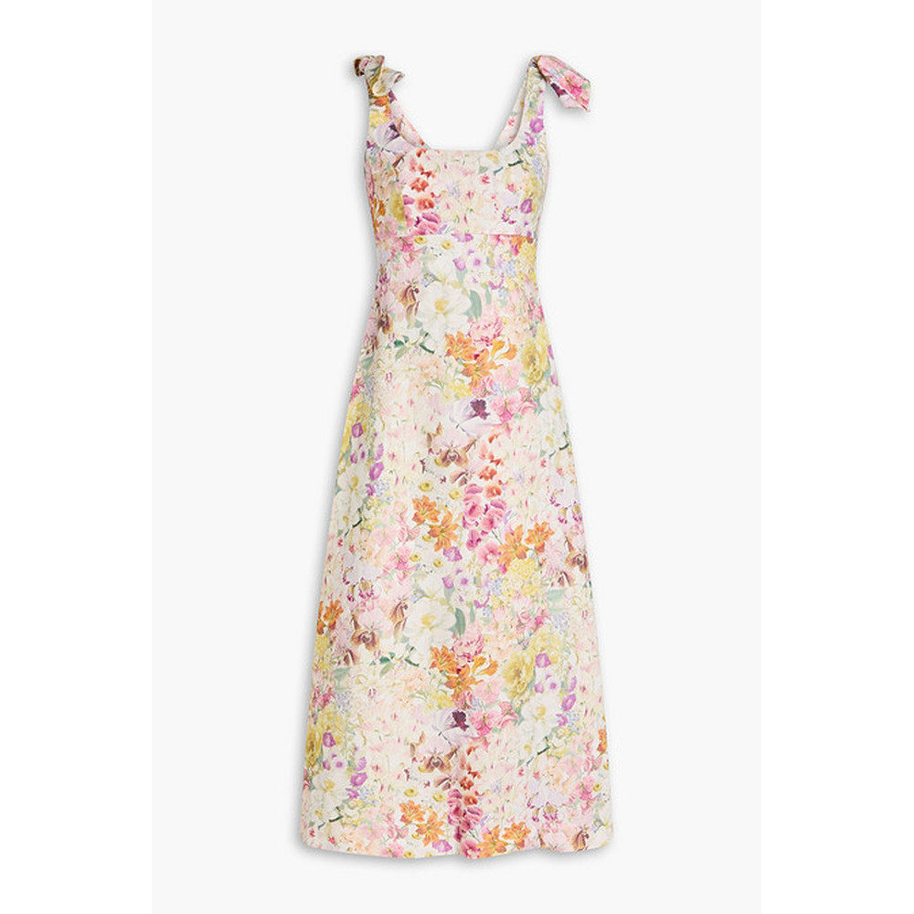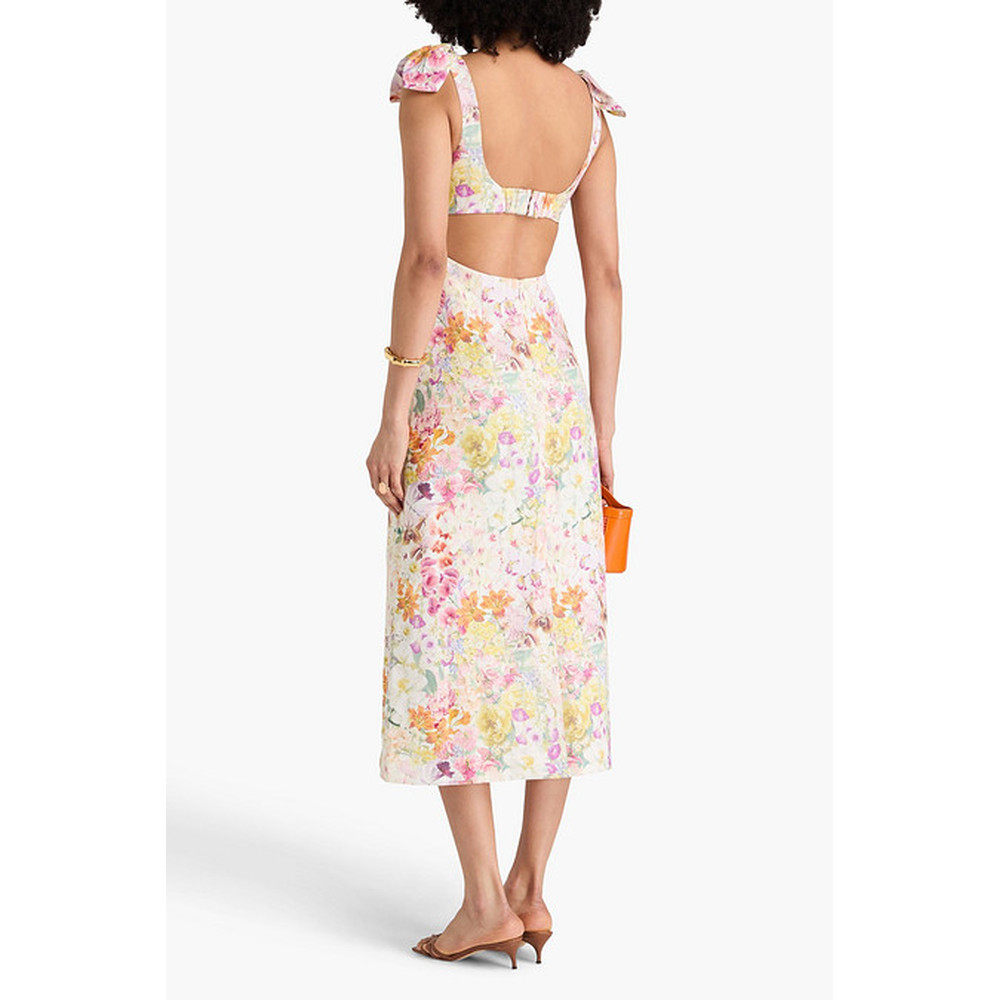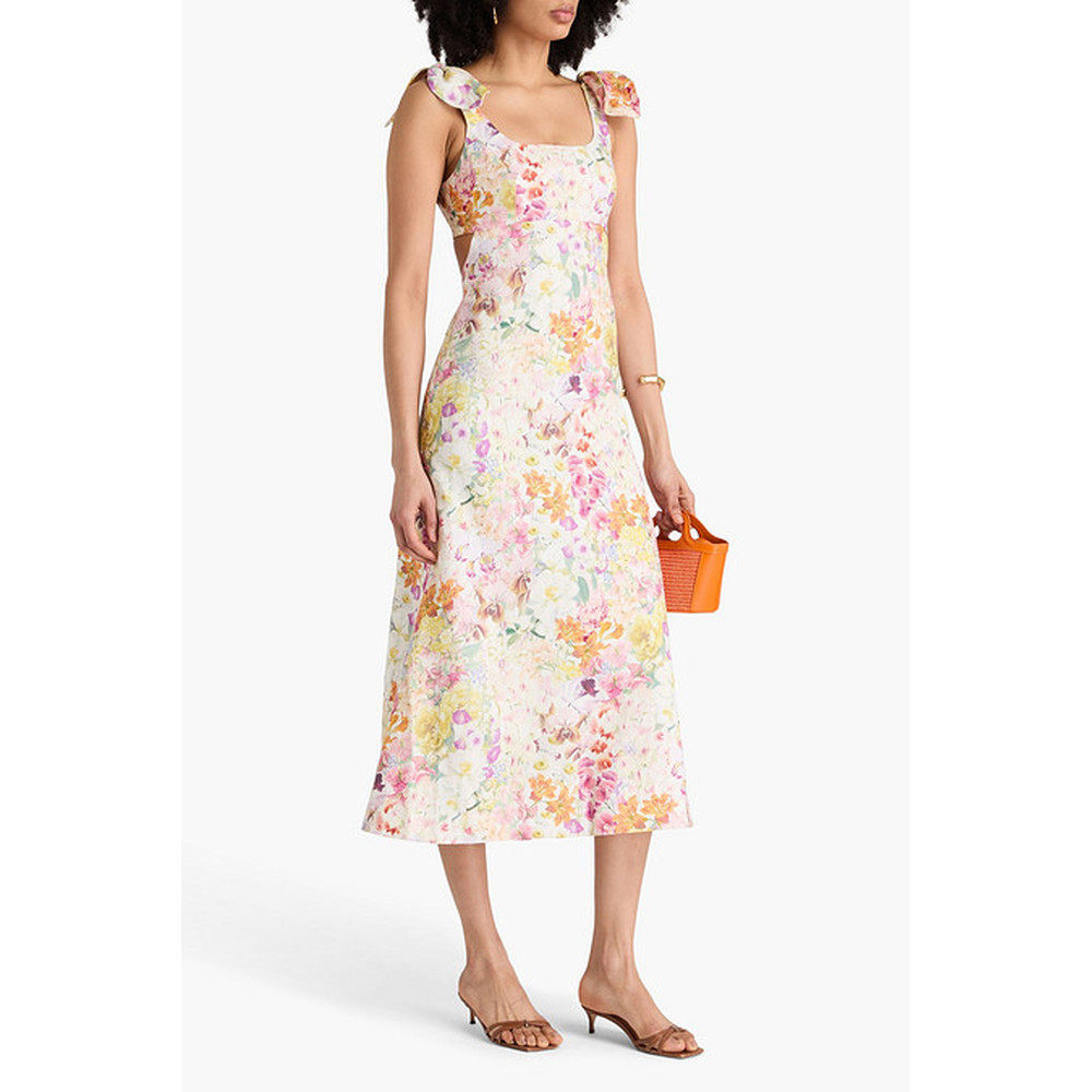 剪口印花亚麻中长连衣裙 1h可退 女士 ZIMMERMANN 3071DS242 潮奢