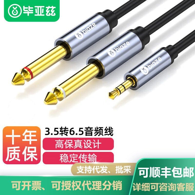 6.35mm左右声道转换 6.35一分二转接线 毕亚兹 3.5转双6.5音频线