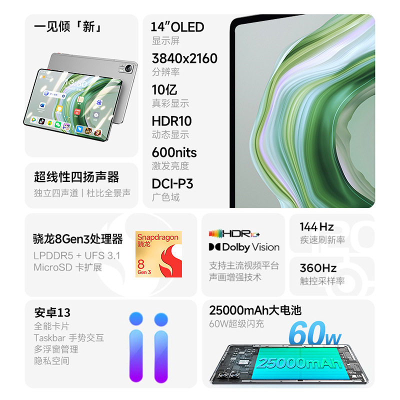 骁龙8Gen3游戏平板电脑5G全网通全面屏12英寸Pad安卓办公网课学习