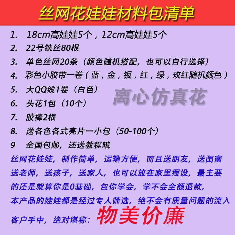 丝网花材料批手工DIY制作材料包套装 可爱小娃娃手工巴芘娃娃套餐