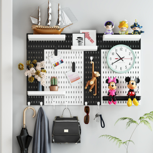 白色宜家孔洞洞板配件金属挂钩通用大全餐桌收纳墙上置物架免打孔