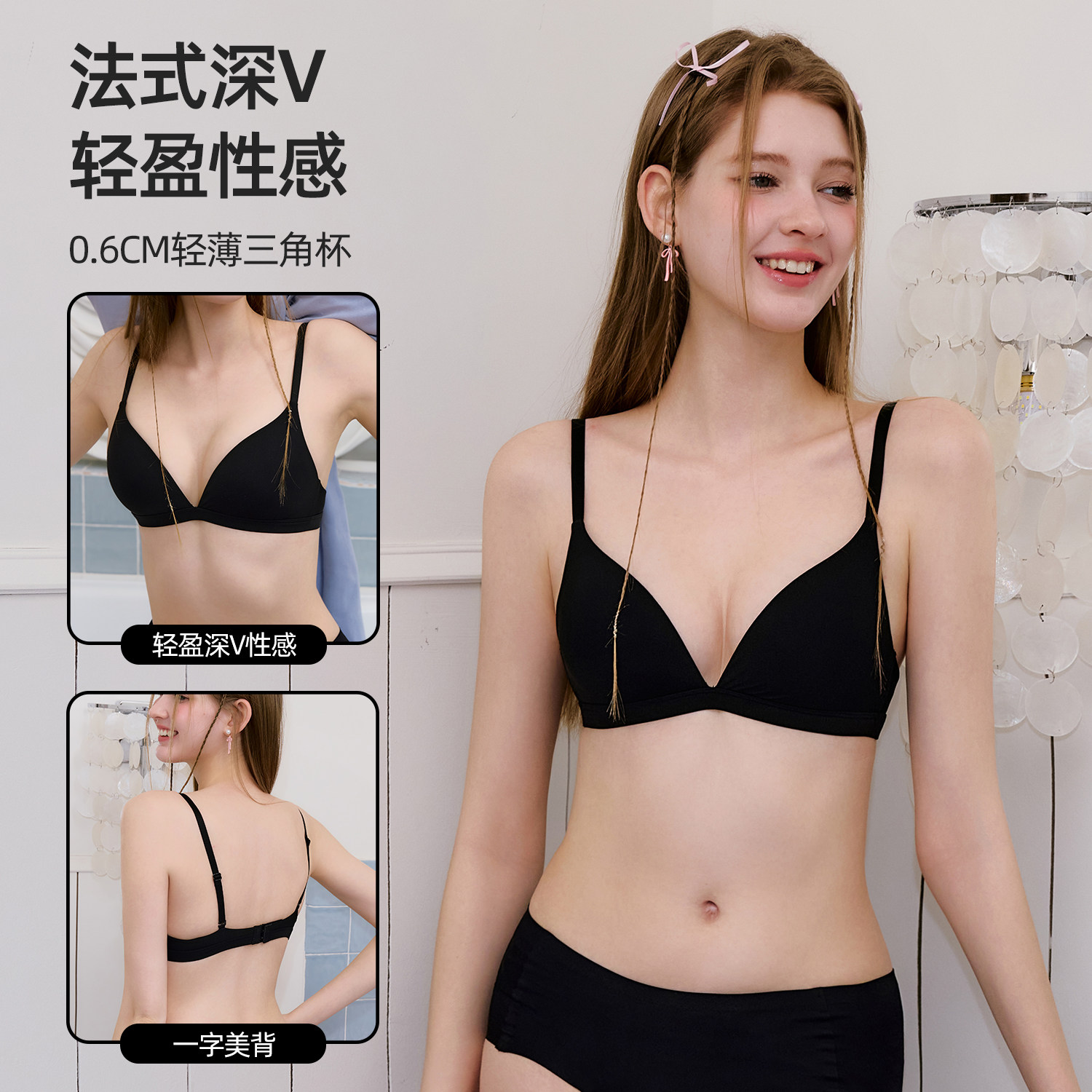 六只兔子内衣女法式 深V无痕三角杯文胸收副乳防外扩性感美背文胸