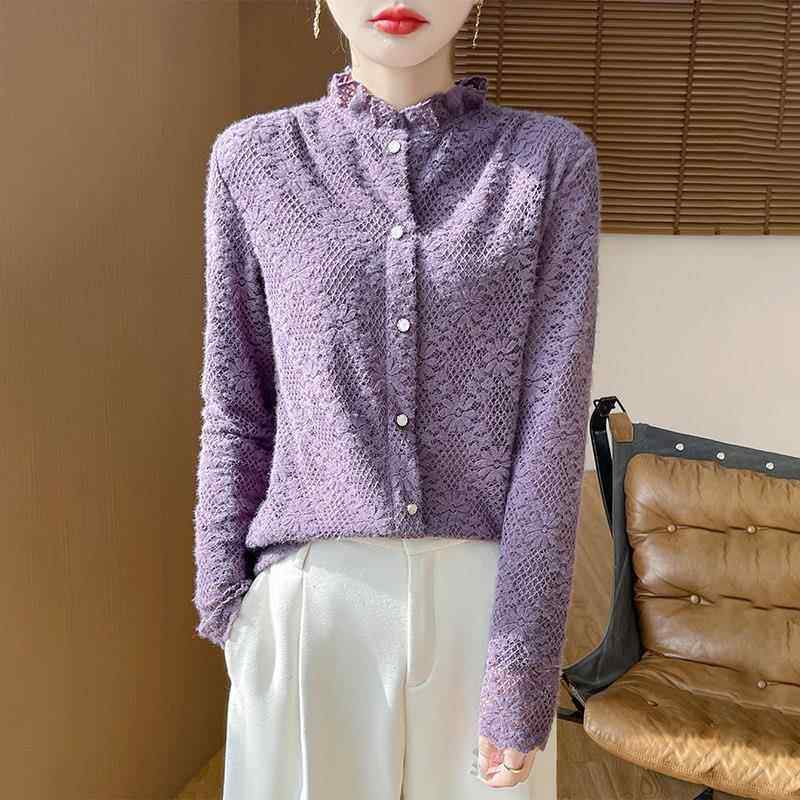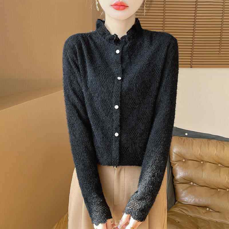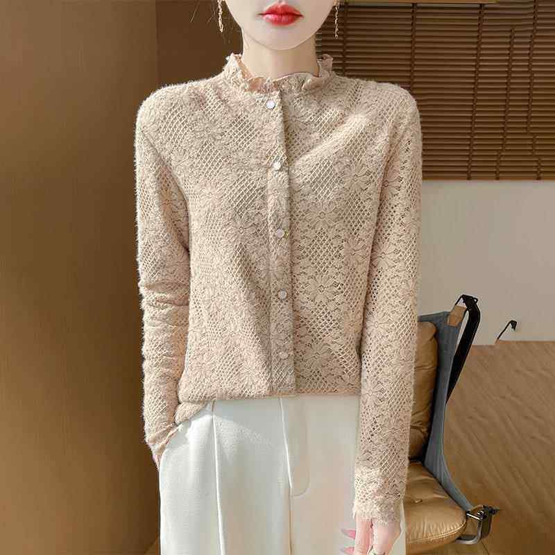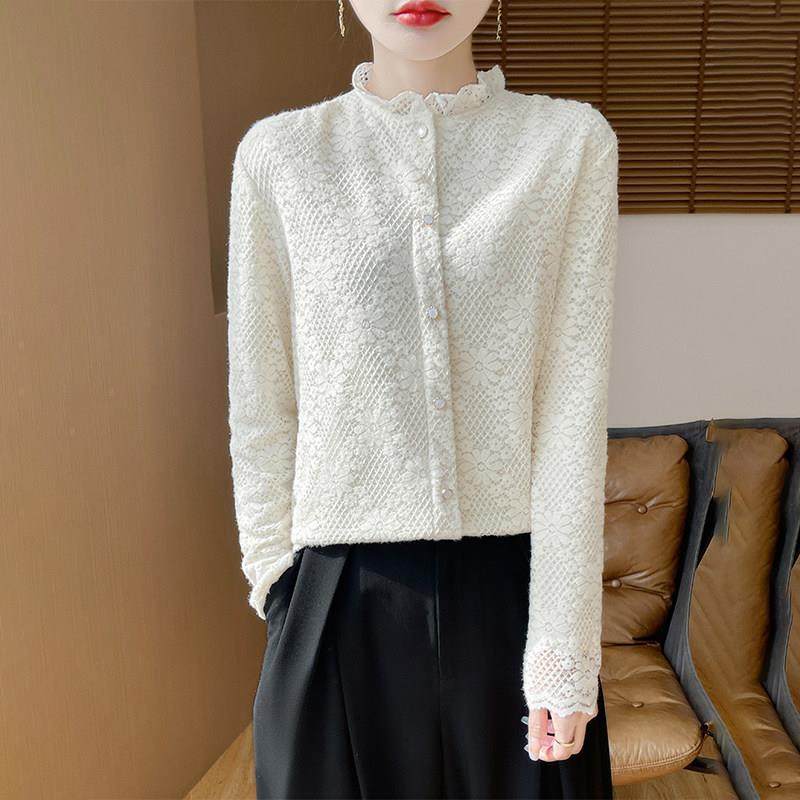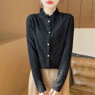 女高领衫 高级荷叶领蕾丝领针织打底衫 1219e 新款 2025冬季