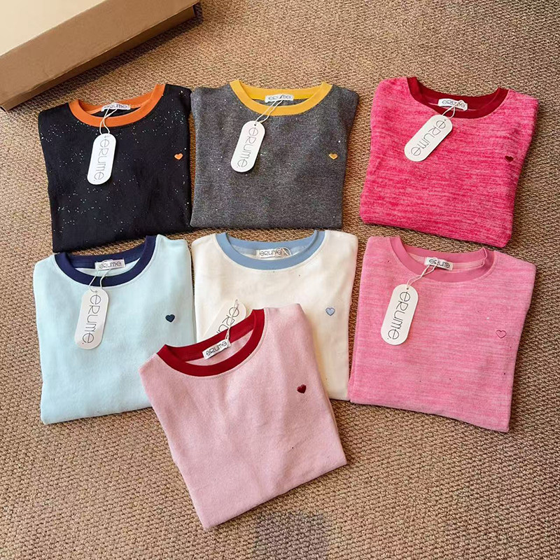 撞色显瘦女糯米绒打底衫 撒银爱心t」韩系 「糯唧唧 122420