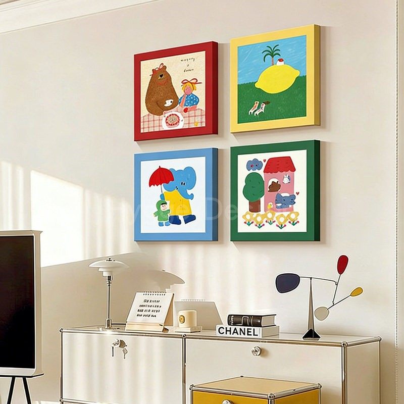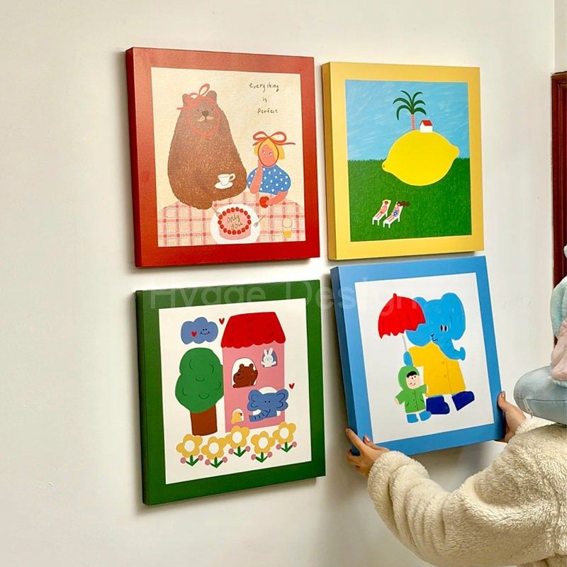 多巴胺客厅装 饰画中古彩色包豪斯卧室大白墙趣味卡通玄关组合挂画