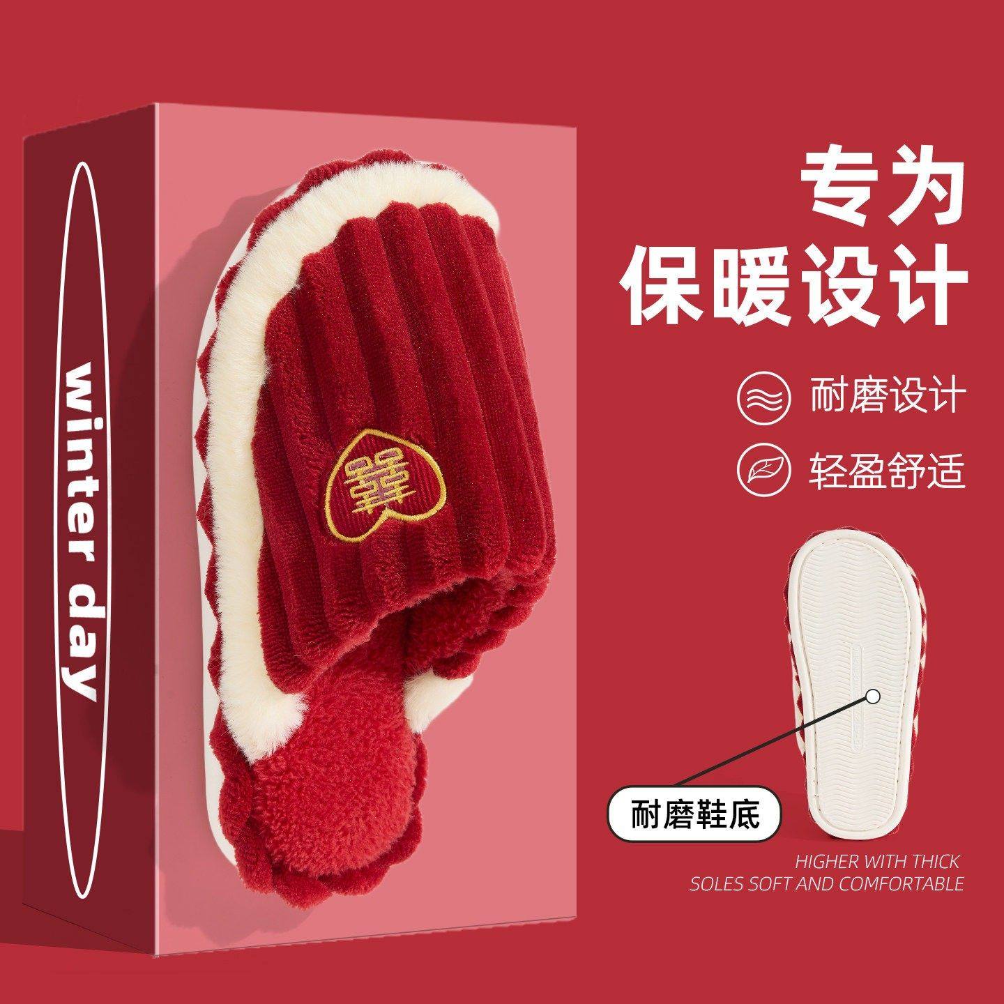 厚底保暖防滑雪地靴 女冬季 初雪小奶驼 巨厚加绒外穿毛毛棉拖鞋