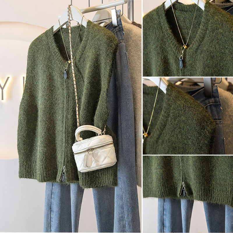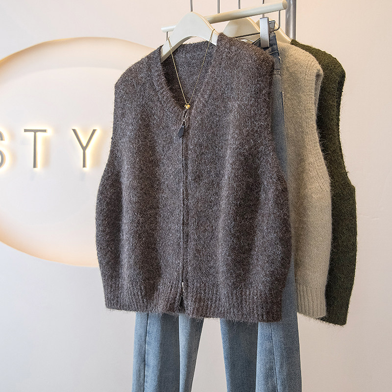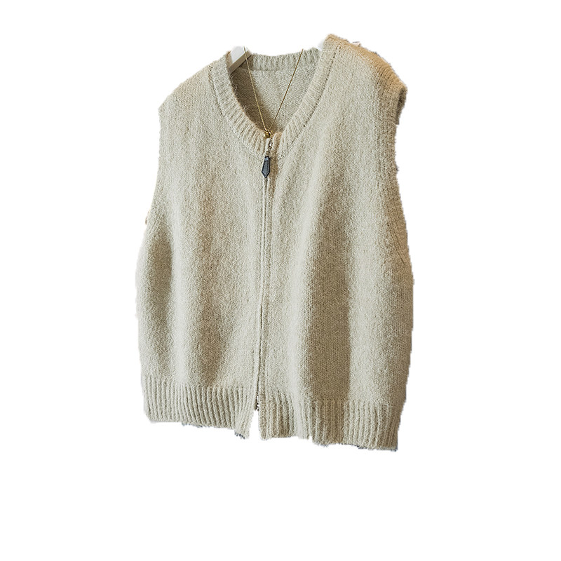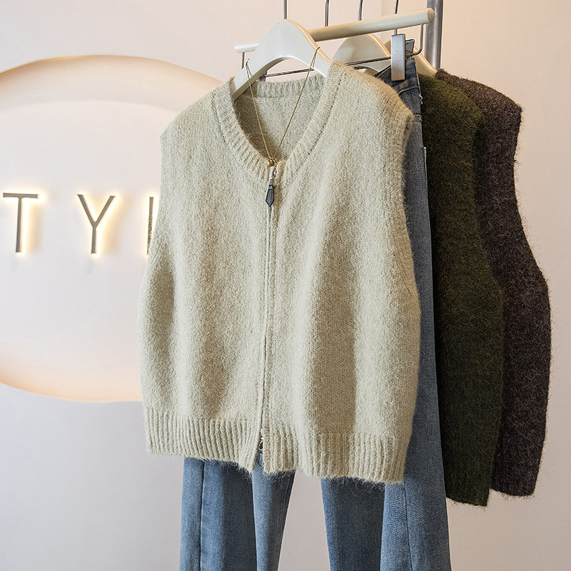 极简高级双拉链开衫 胖mm休闲宽松毛衣坎肩背心 针织马甲女秋冬大码
