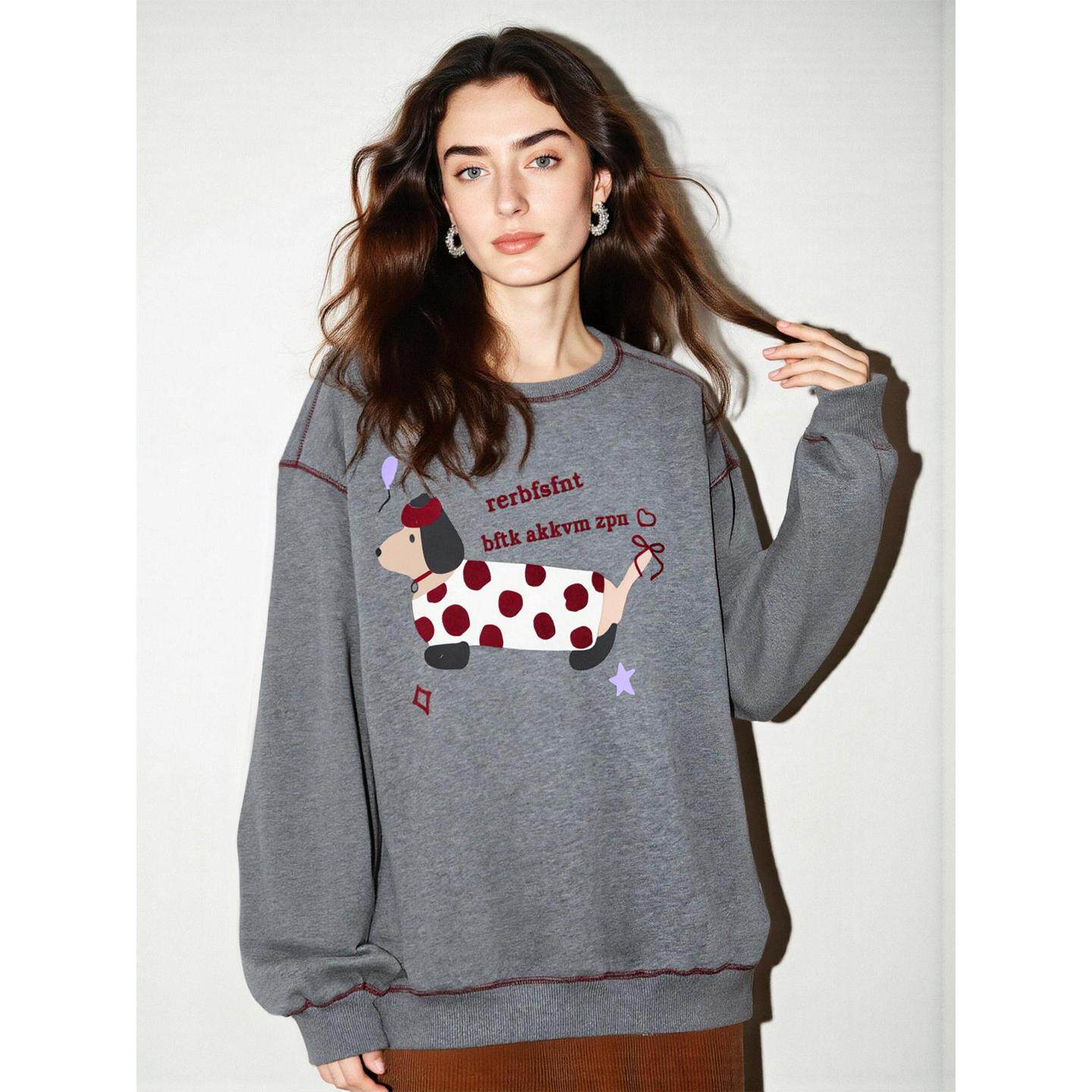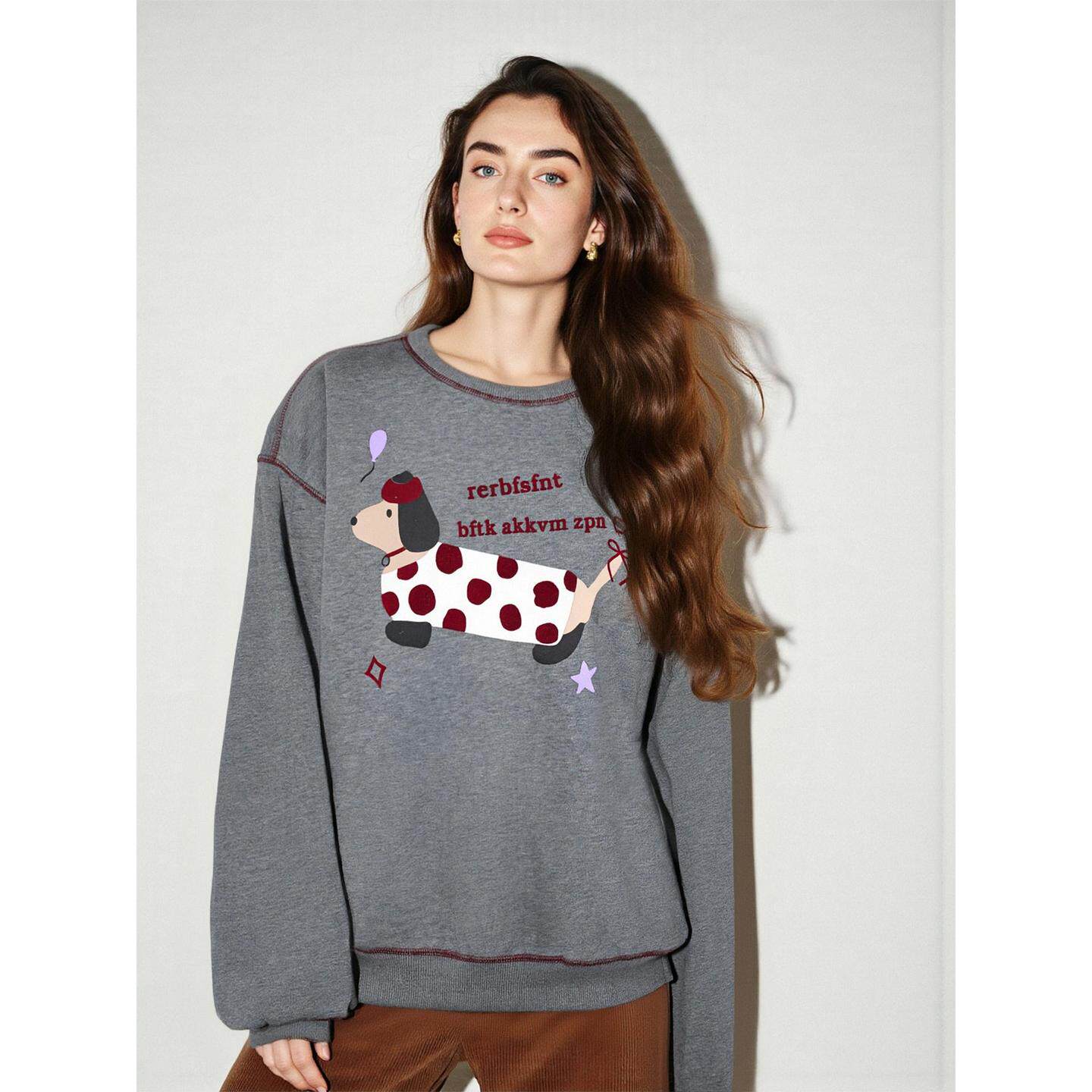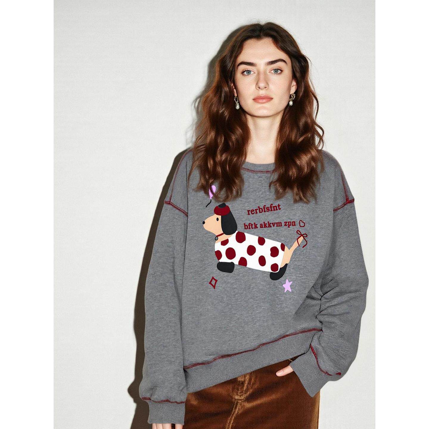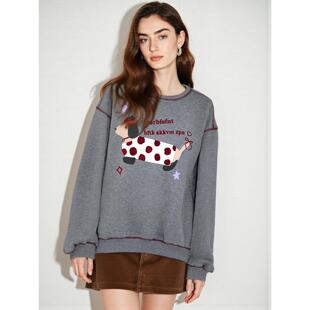 新款 百家好灰色印花圆领卫衣女2026春季 慵懒宽松上衣 House Basic