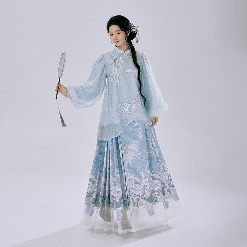 明制汉服成人新中式 月渺境 女2025新款 马面裙套装 半身裙 清波灵鱼