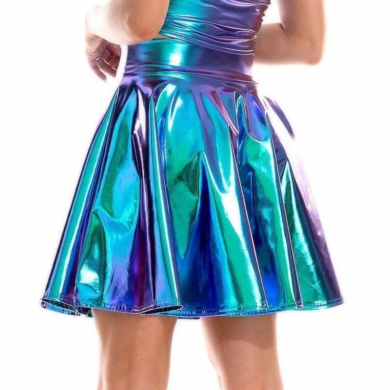 short Laser swing large skirt镭T射亮面表演服大摆短裙 glossy
