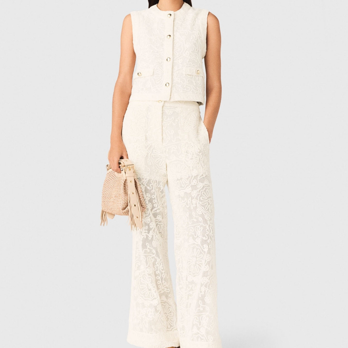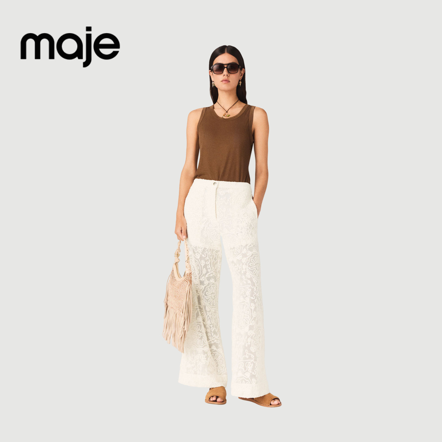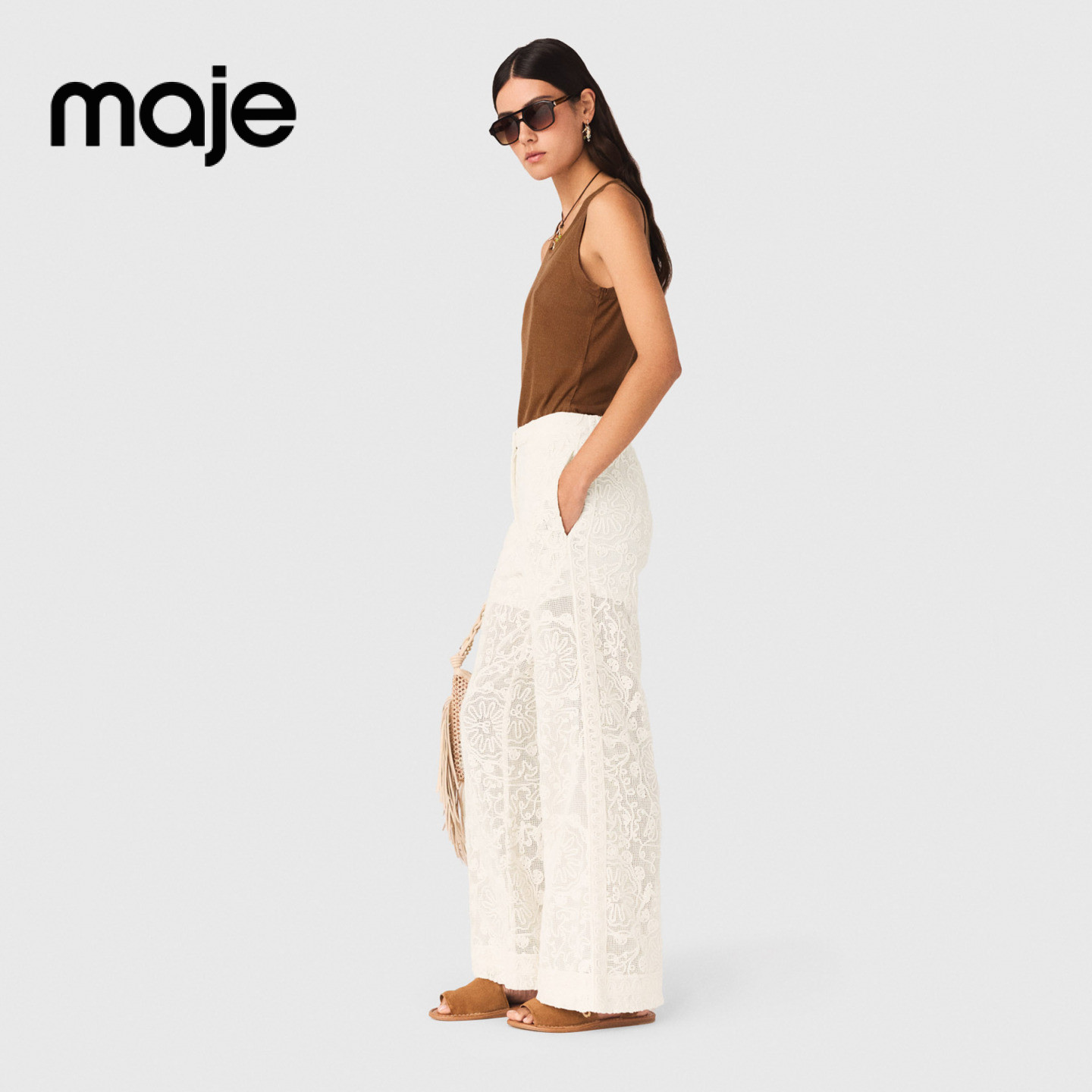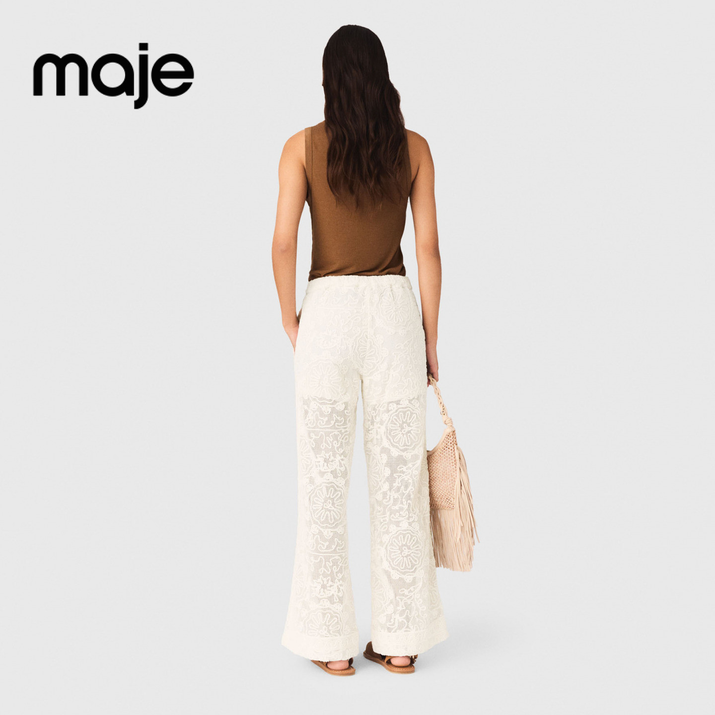 气质白色提花设计棉质阔腿针织长裤 Maje新品 法式 女装 首发春夏新款
