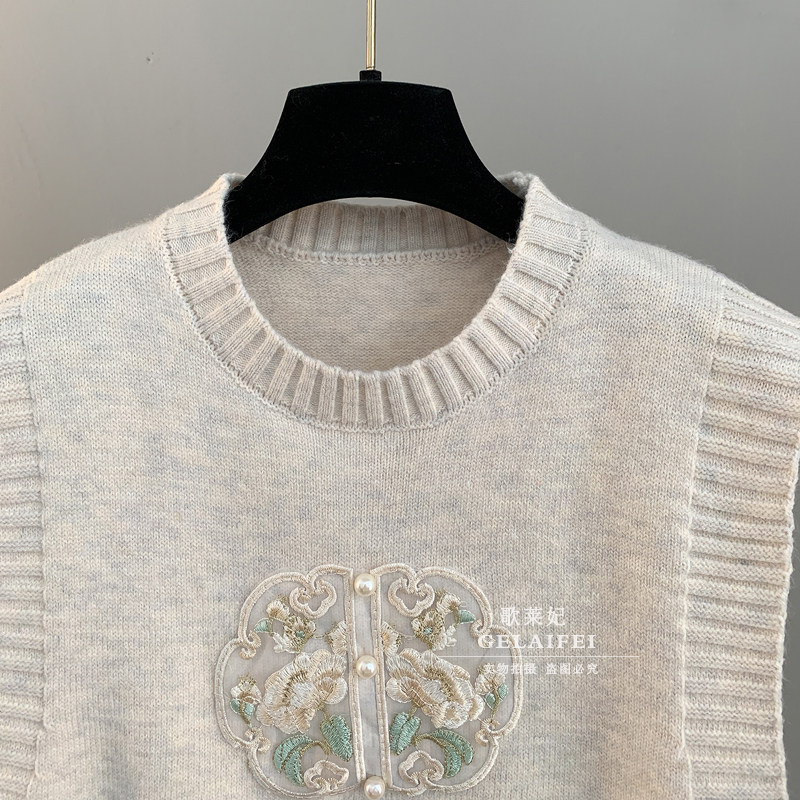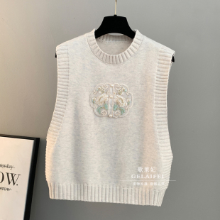 新中式 百搭宽松显瘦叠穿上衣 国风刺绣圆领针织马甲女2026秋冬新款