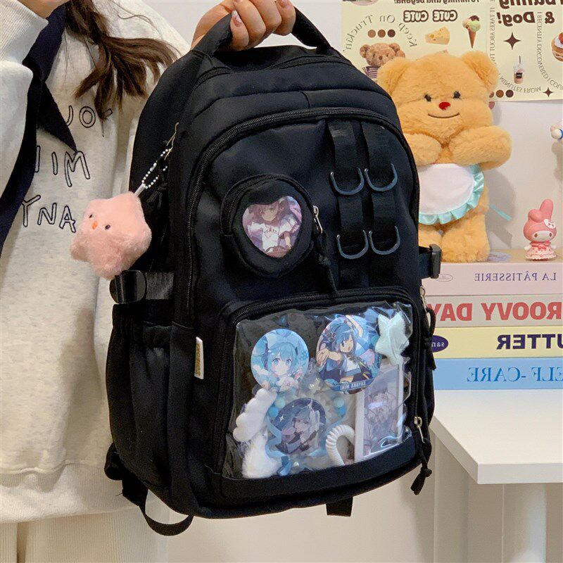 日系可爱小学生书包初中生痛包高中学生带透明层吧唧背包女双肩包