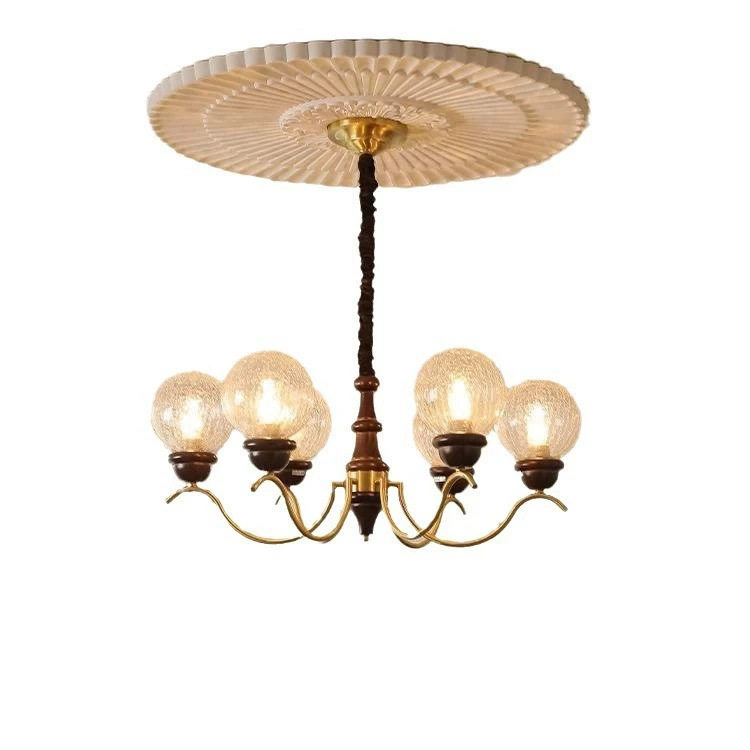 法式 复古房间led灯具 中古客厅吊灯实木魔豆灯南洋风大厅主灯美式
