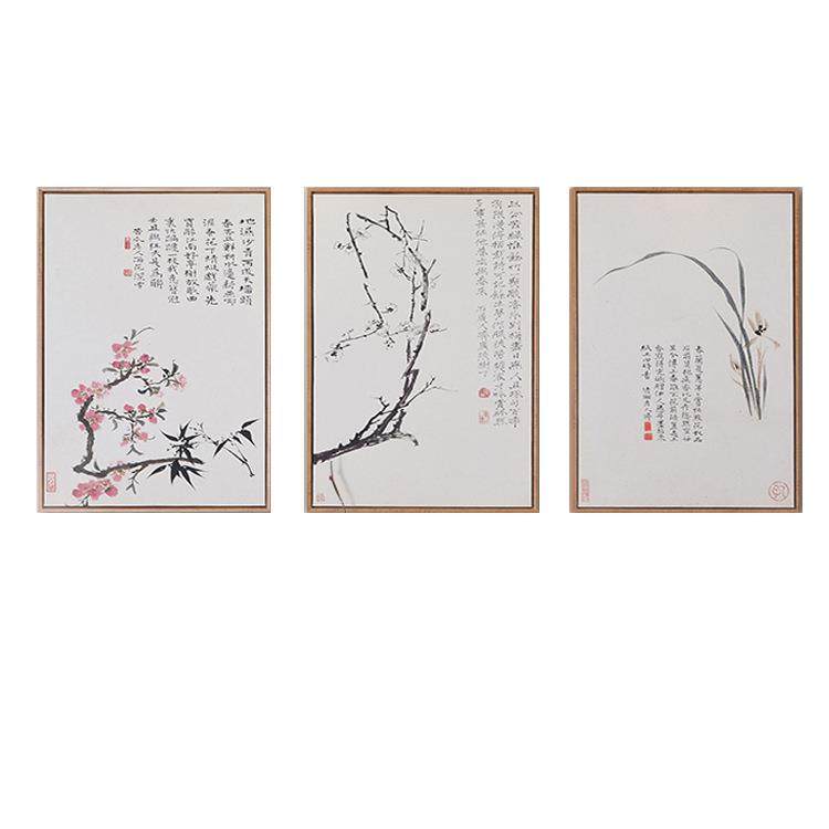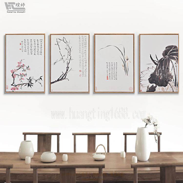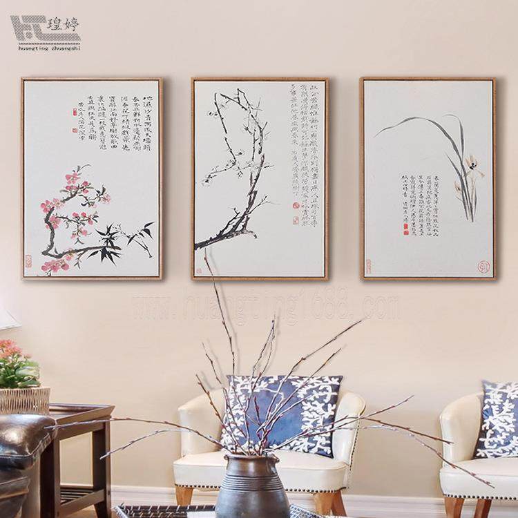 新中式 饰画石涛水墨花卉沙发背景墙挂画有框画 现代简约客厅书房装