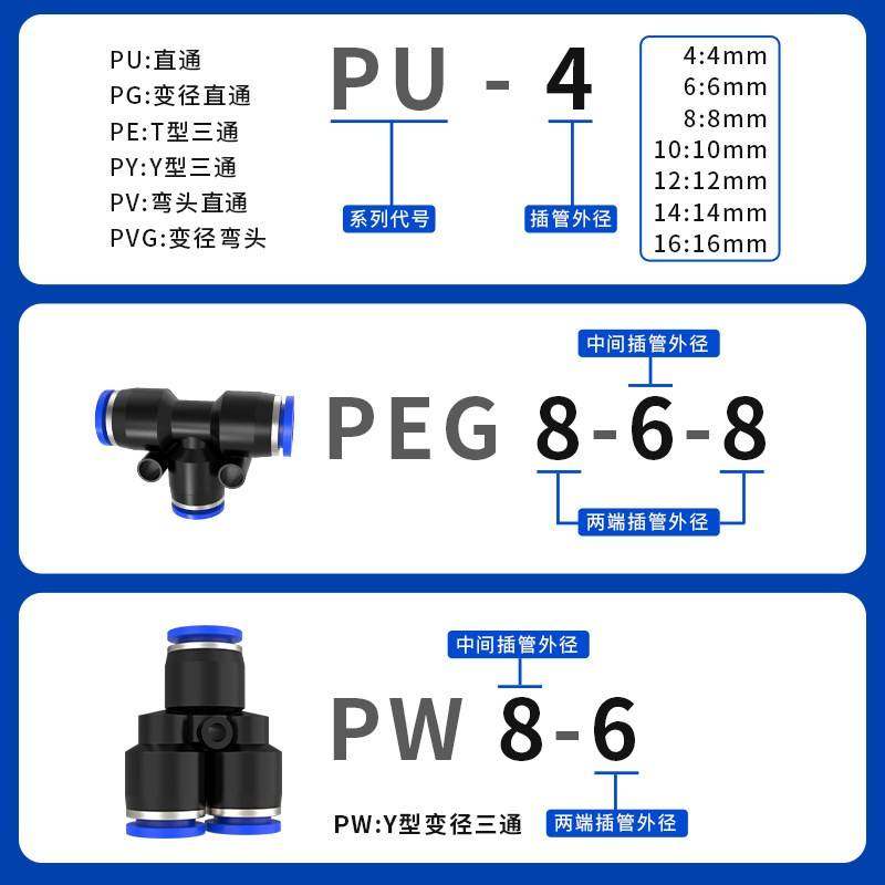 气动气管PU塑料直通对接快速接头PE三通PG PW变径PY4 PEG