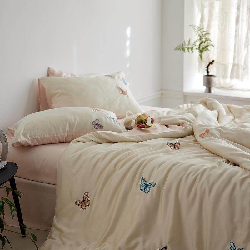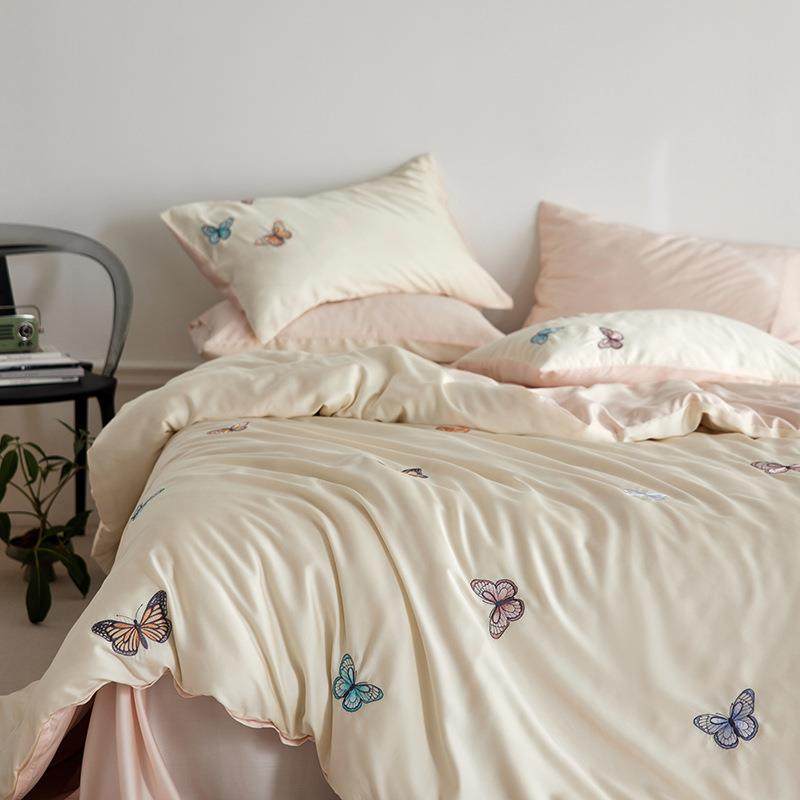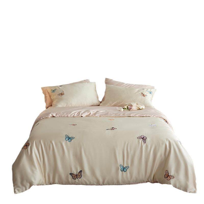 A类60支兰精天丝长绒棉刺绣四件套丝滑裸睡轻奢床单被套凉感床品