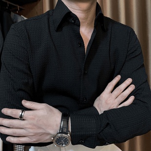 内搭长袖 男商务通勤英伦雅痞个性 衬衣 短袖 2026高级感华夫格白衬衫