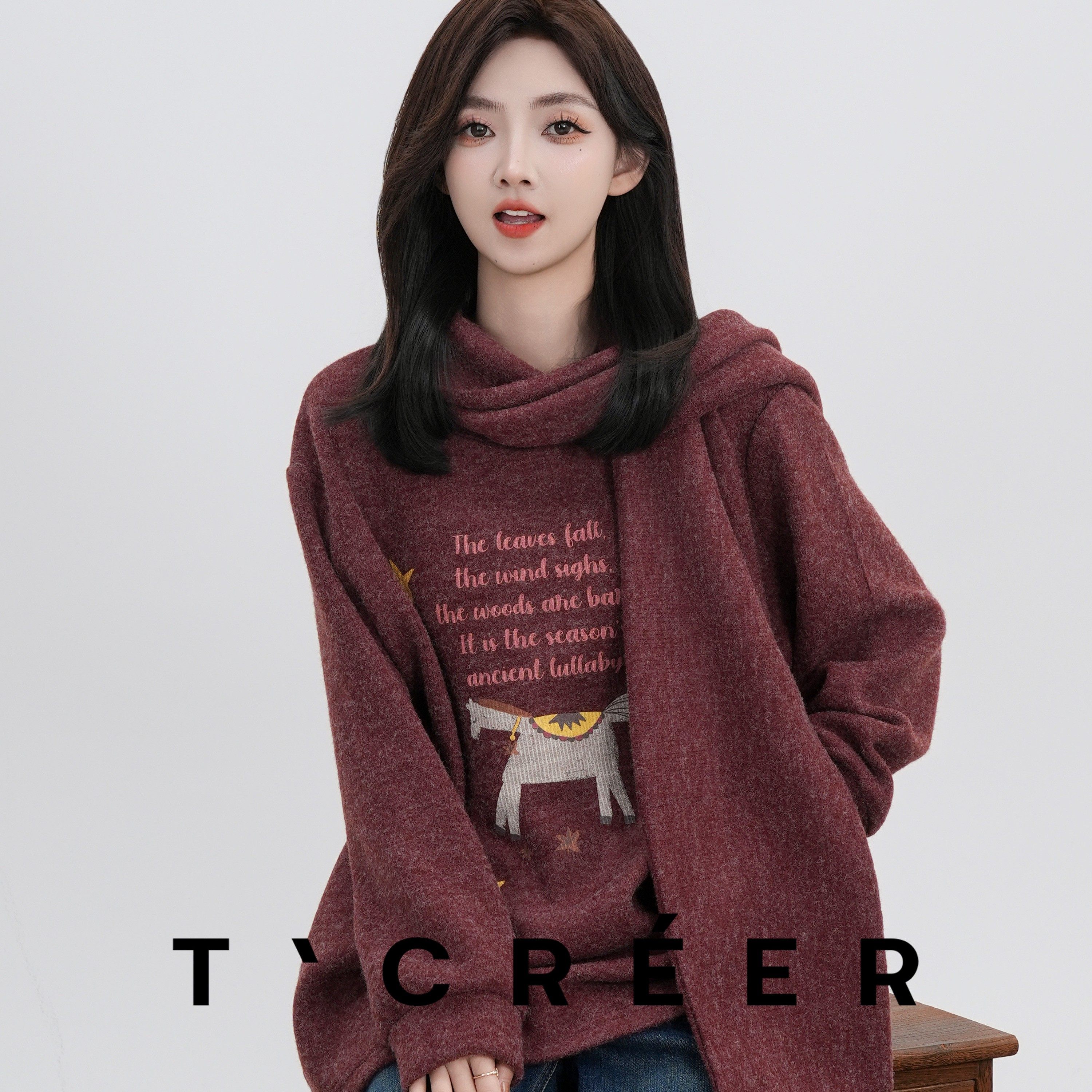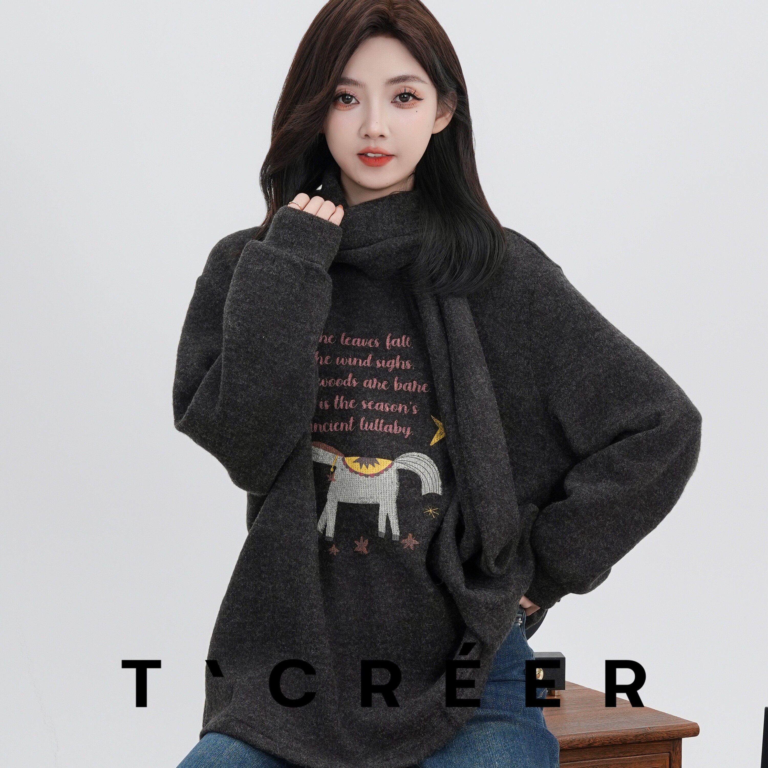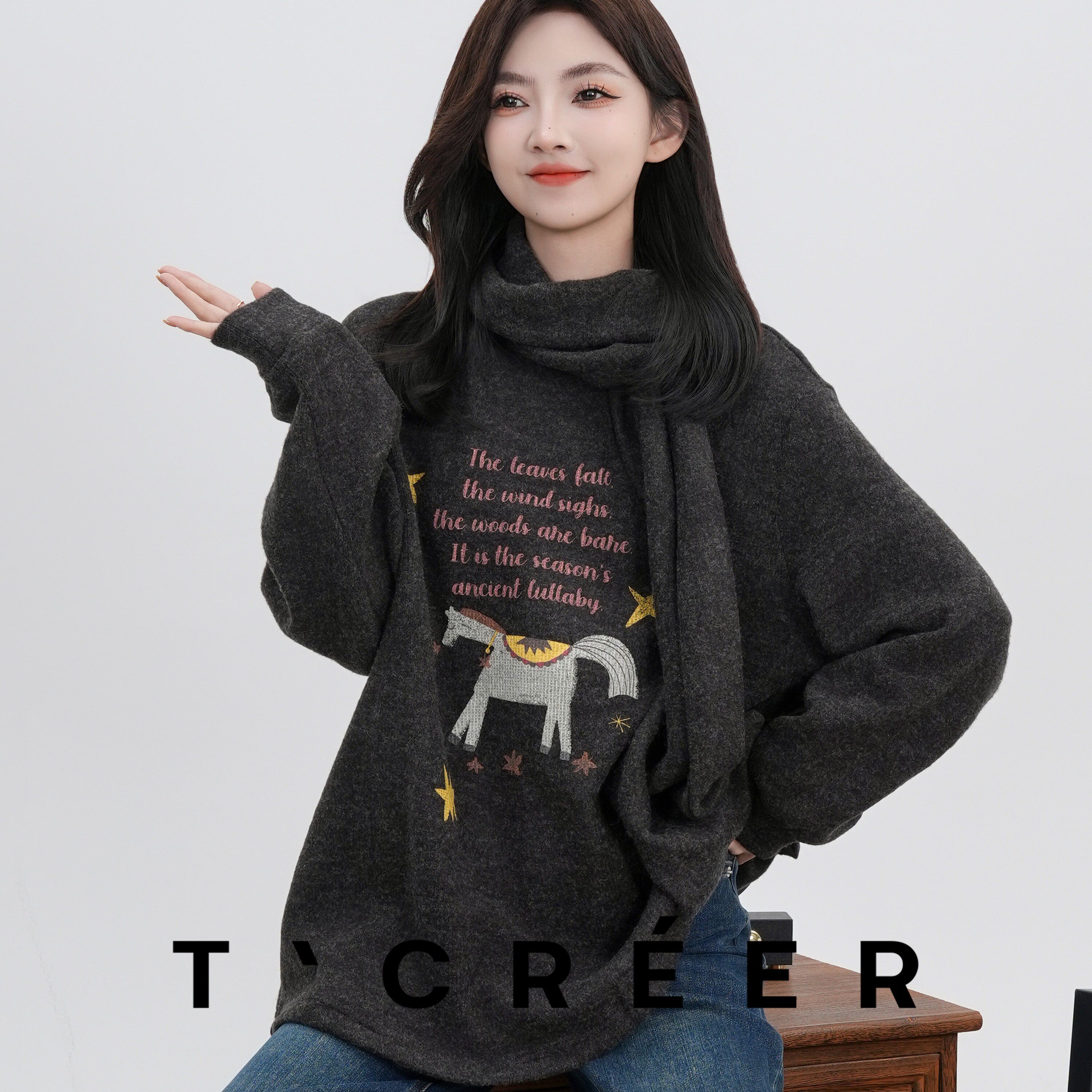 T`CREER| 韩系卡通小马印花宽松慵懒百搭毛衣女 鸿运驰骋