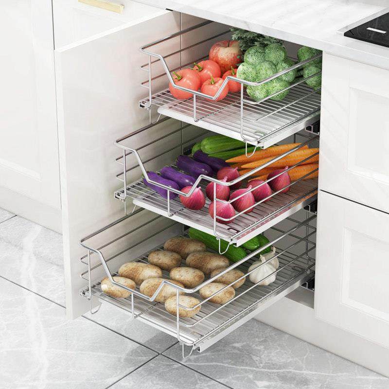 悍高厨房橱柜拉篮三层抽屉式 304不锈钢碗碟拉篮铝合金三层调味篮